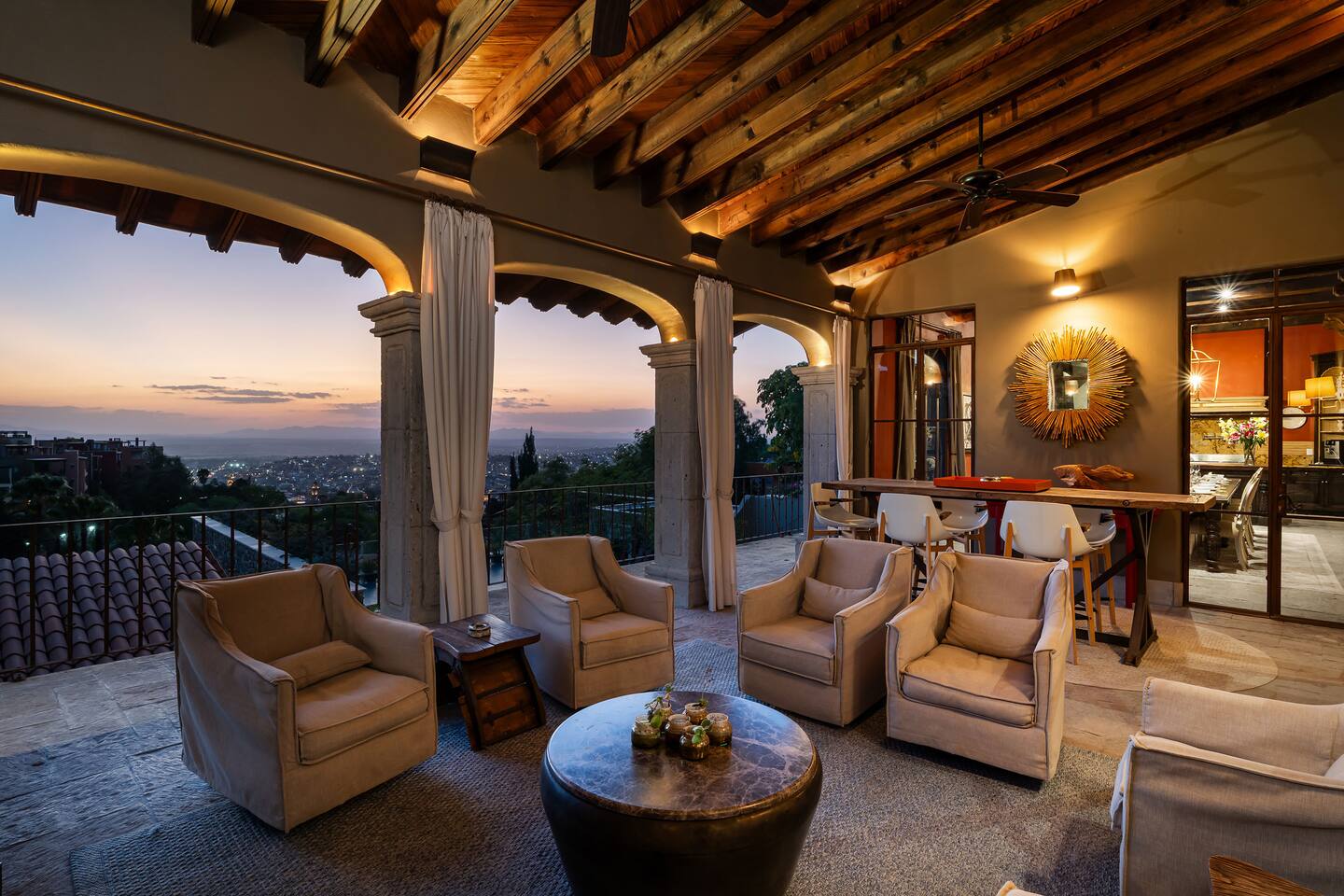 Recently renovated, Casa Faroles is one of the most iconic villas in San Miguel de Allende, now available for vacation rentals as well as events and weddings. This spectacular 7-bedroom estate features a dedicated event space with capacity for over 150 guests, offering an exceptional blend of luxury, comfort, and convenience—ideal for group getaways, wellness retreats, or once-in-a-lifetime celebrations.