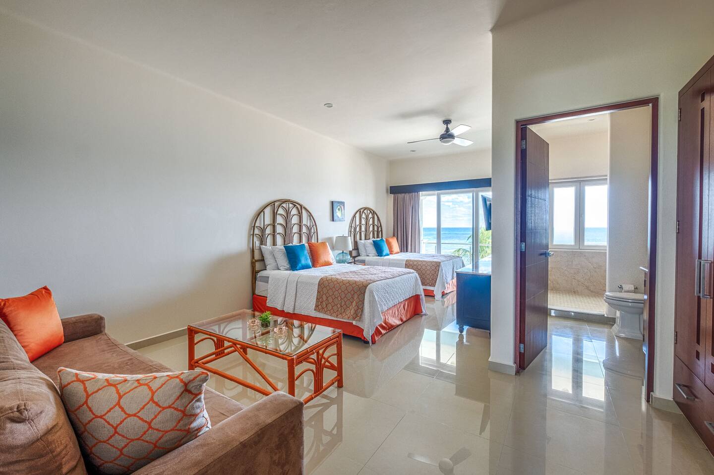 • Bedroom 3: King bed, private bathroom, flat-screen TV, ocean-view balcony