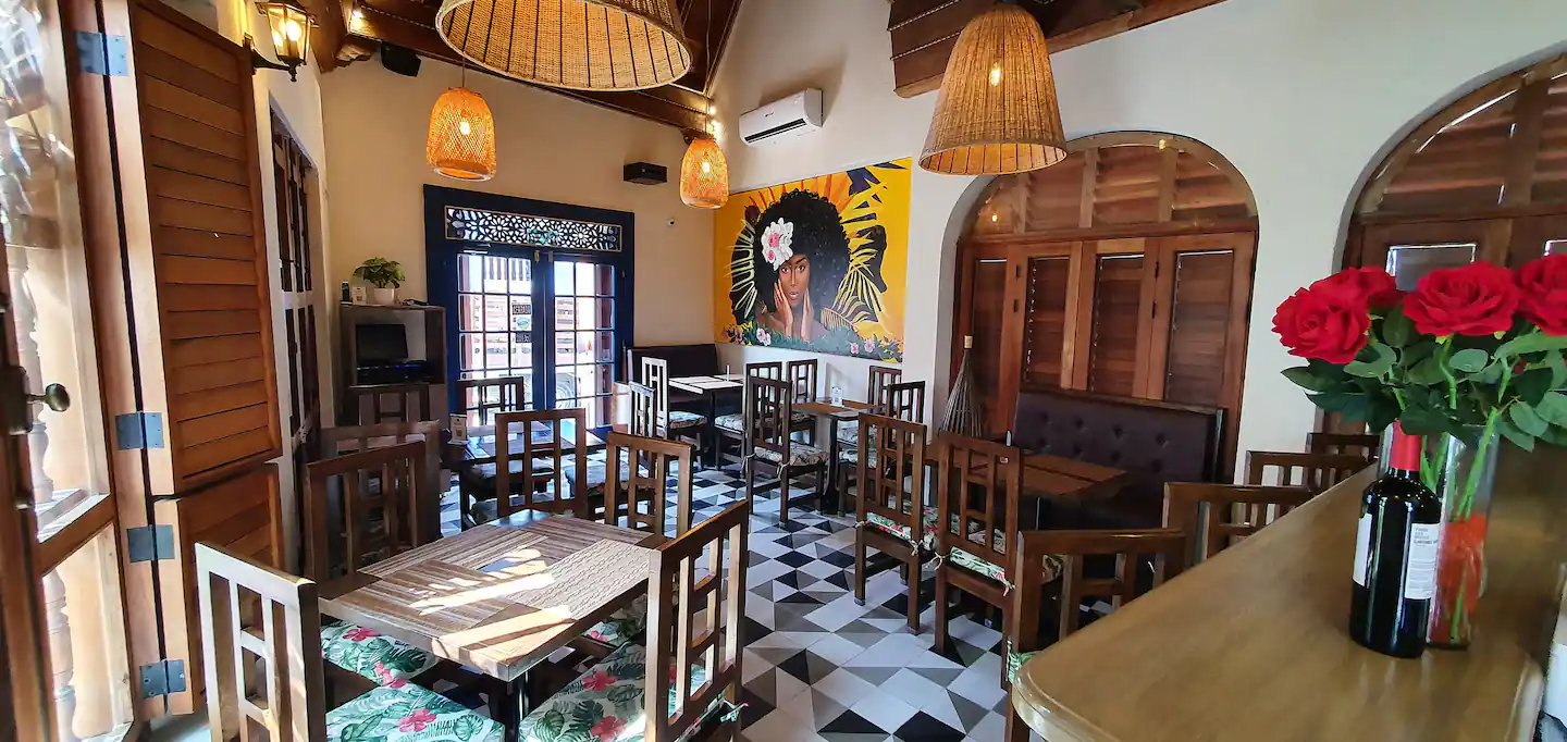 The villa features a rooftop jacuzzi with breathtaking views of both sunrise and sunset. With colonial wooden ceilings, coral walls, marble countertops, and detailed woodwork, the house radiates warmth and elegance. Guests can also enjoy the serene garden, unique city views including Castillo San Felipe, Cerro de la Popa, and nearby districts, all while being just one block away from the iconic city walls.