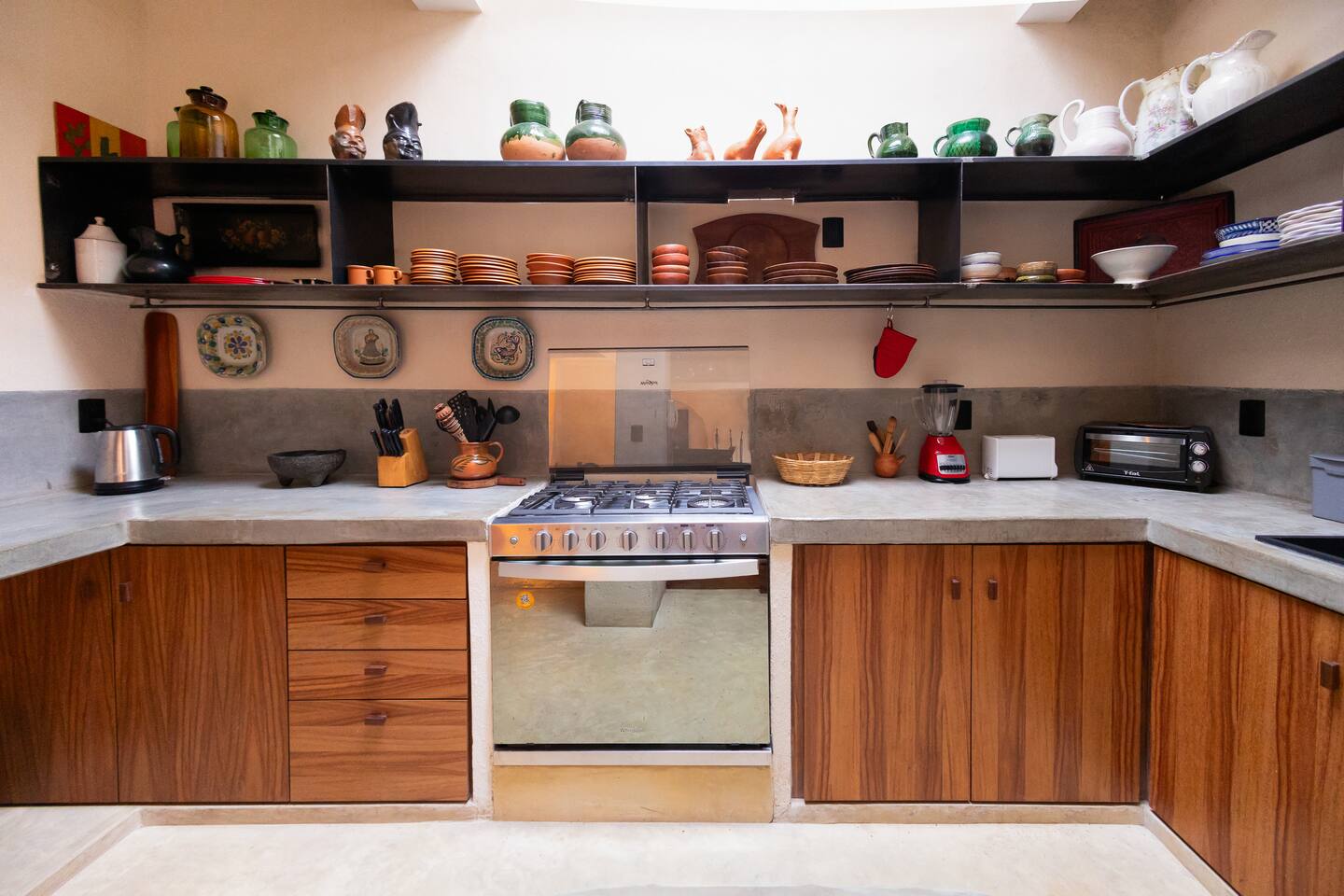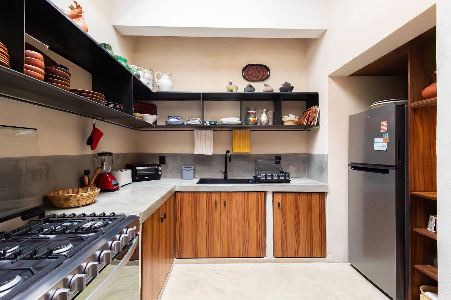 The house features four bedrooms, each with its own bathroom, a cozy living room, a dining area for eight, a well-equipped kitchen, and an inviting indoor terrace. Casa Muro is designed to make travelers feel at home, whether you’re here with family or friends. Please note: Oaxaca is experiencing water shortages, so guests are asked to conserve water during their stay. For security reasons, only registered guests may enter the property.