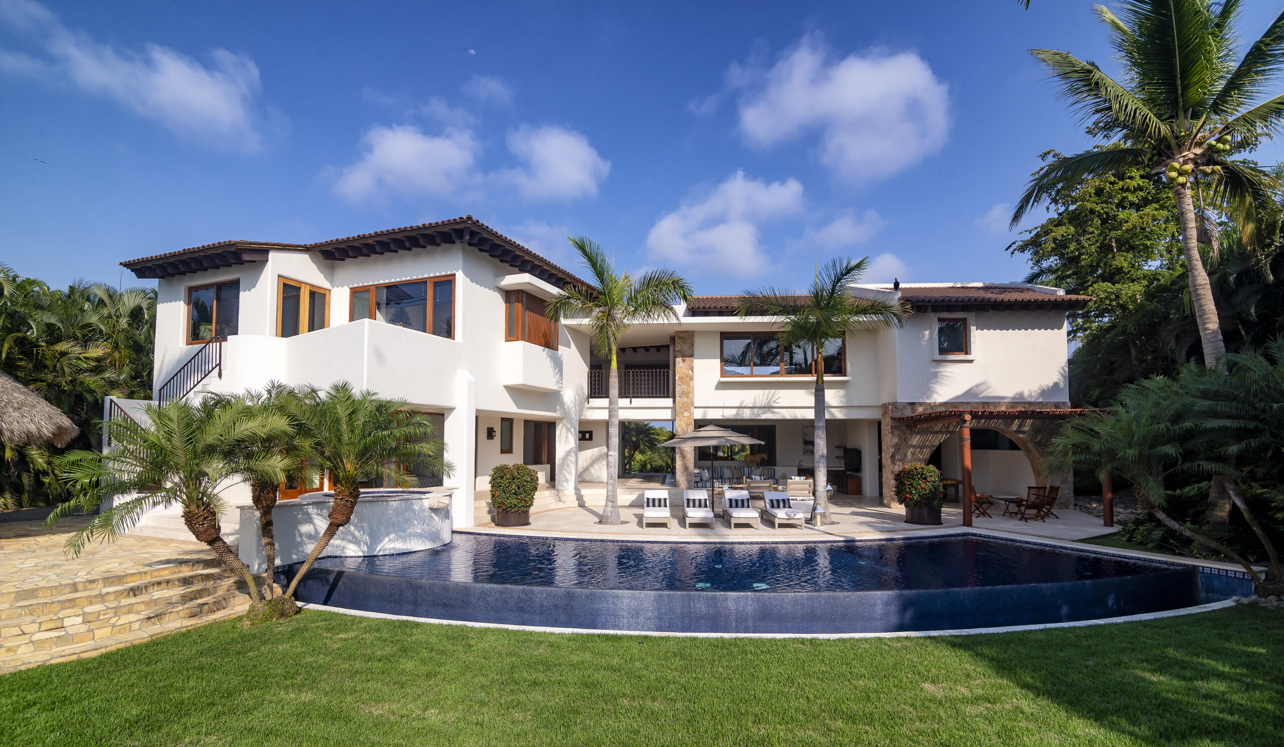 Casa Serena is an exquisite four-bedroom luxury villa located in Lagos del Mar, Punta Mita, perfectly positioned between the Jack Nicklaus Signature Golf Course and the stunning Pacific coastline. Set on a private half-acre estate, this elegant retreat offers a refined blend of comfort, serenity, and exclusivity, surrounded by lush landscapes, ocean breezes, and the peaceful ambiance of a world-class resort community.