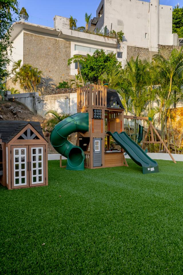 Set on 3,852 m² of landscaped property just 20 minutes from Acapulco International Airport, this magnificent 13-bedroom villa blends open-concept living areas that flow seamlessly into pool and lounge spaces. Guests can enjoy gourmet meals prepared by a private in-house chef, relax in the jacuzzi, or unwind while attentive staff handles every detail. Families will love the dedicated children’s play areas, while adults enjoy spa-like comfort throughout the property.