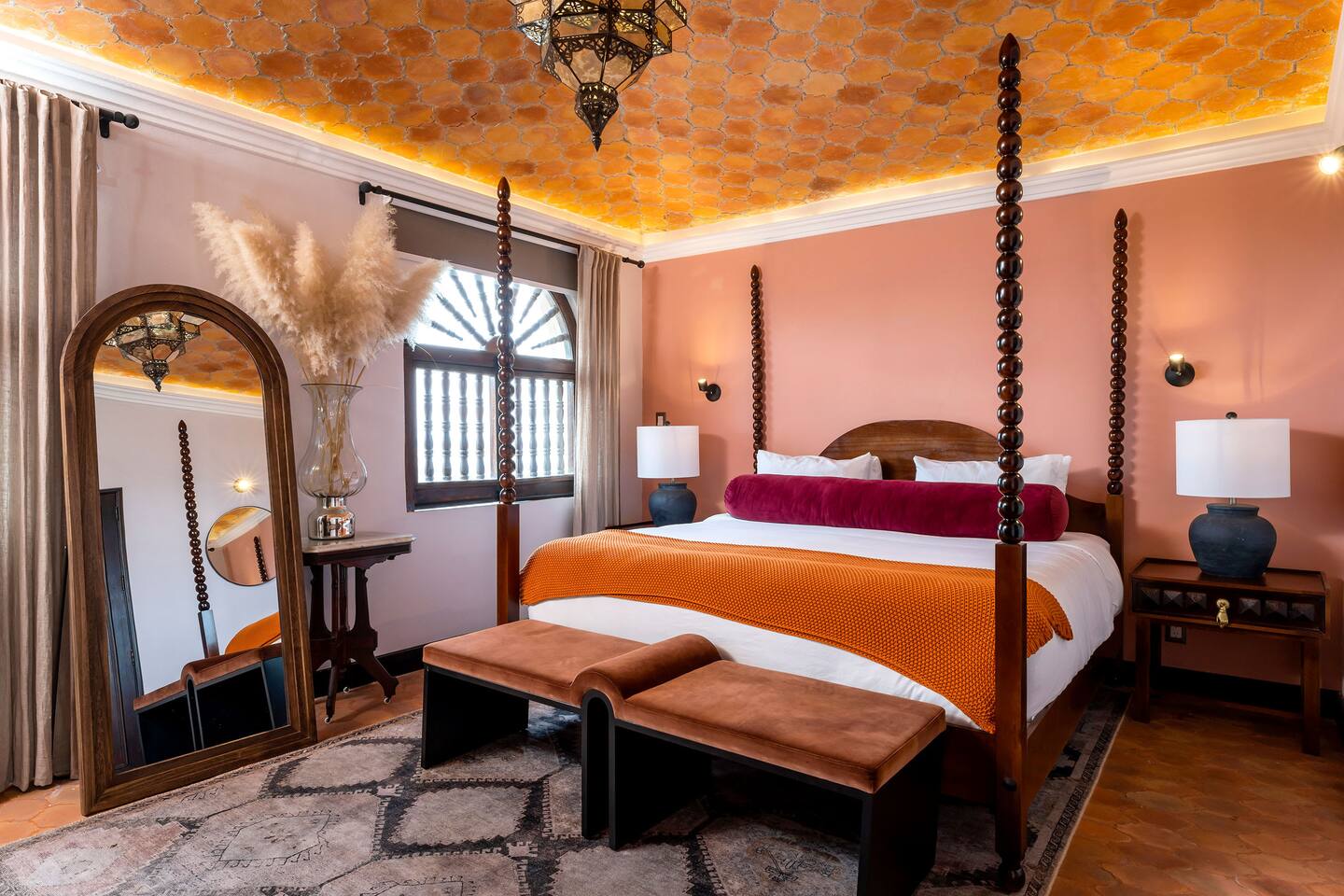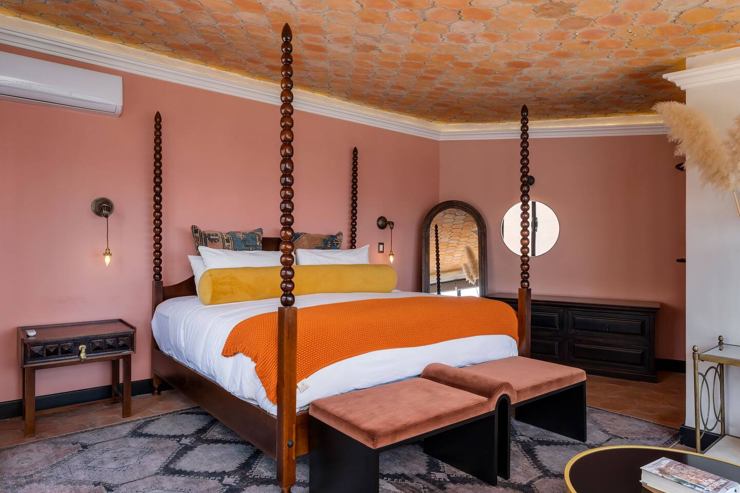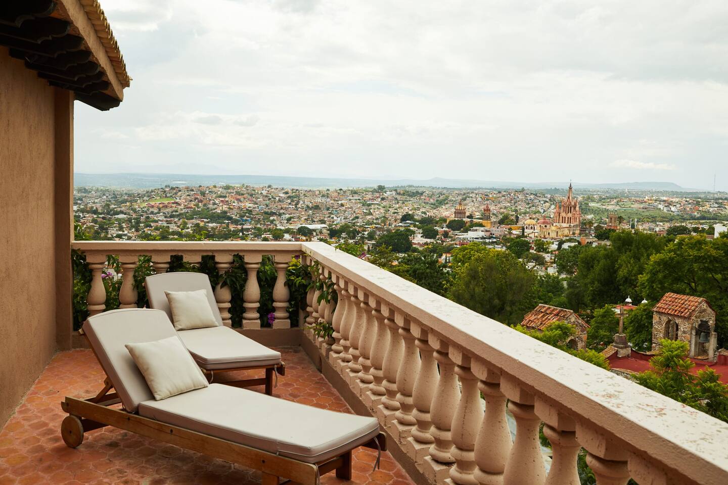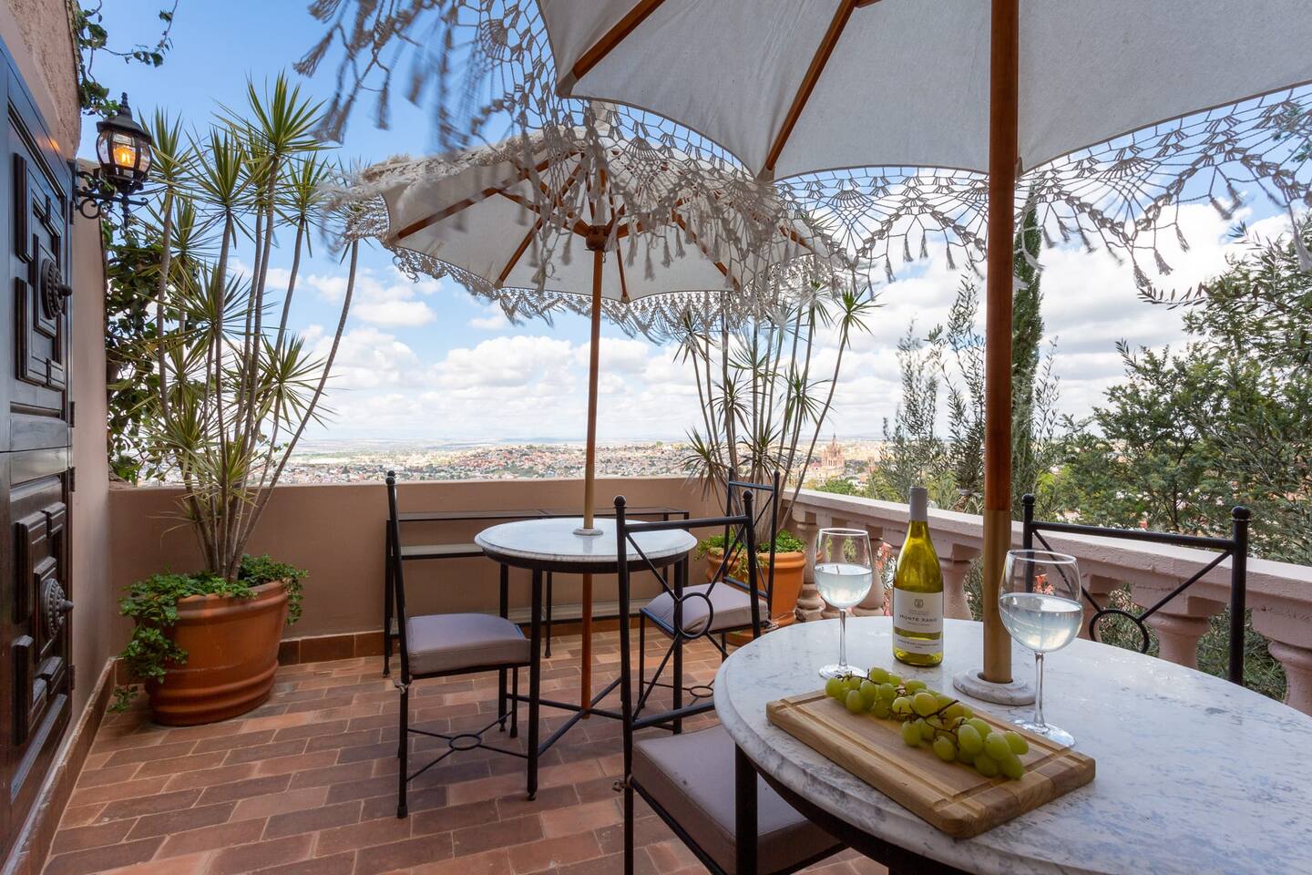 Casa Vista is a 6-bedroom Spanish-style villa perched on a hillside with breathtaking panoramic views over San Miguel de Allende. Located just steps from El Jardín, this unique retreat blends old-world charm with modern comfort. Guests enjoy hotel-quality bedding, lush gardens, daily breakfast, daily housekeeping, and a heated pool with jacuzzi for up to 16 guests, making it ideal for families or groups.