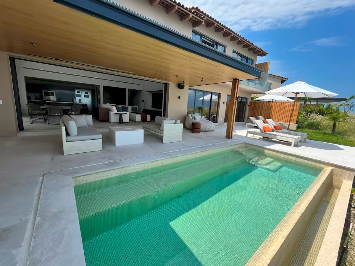 Escape to Casa Vista, a stunning 6,500-square-foot luxury villa perched on a hill in the exclusive Iyari neighborhood of Punta Mita. This two-story residence offers breathtaking ocean views of the Pacific coast and the picturesque town of Sayulita. Designed for unforgettable family vacations, the home features an expansive living area that opens onto a wide terrace with a private pool. Whether you are enjoying the state-of-the-art outdoor grill or exploring the vibrant nearby village of El Anclote, Casa Vista provides the perfect setting for a high-end coastal retreat.
