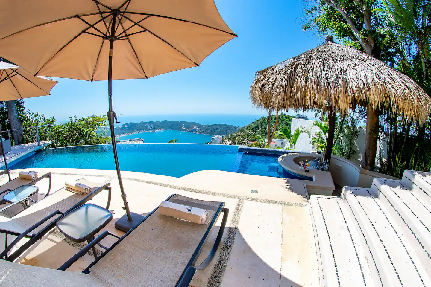 Spectacular boutique villa in Acapulco located inside the exclusive residential community of La Cima, offering absolute privacy with double security gate access. This stunning property features 4 bedrooms with Smart TVs, 5 bathrooms, a family room, infinity pool, wet bar, garden with grill, and parking for 3 cars. Designed for comfort and relaxation, it’s perfect for enjoying outdoor living with a private pool, outdoor dining area, and BBQ space—ideal for summer getaways.