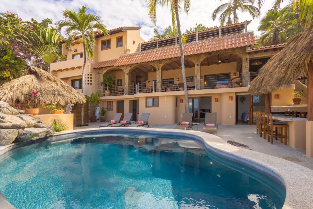 Escape to Casa Zula, a stunning, modern beach retreat nestled in the hills of northern Sayulita. Just five minutes from downtown yet far enough to enjoy absolute peace, Casa Zula offers breathtaking ocean and jungle views, the soothing sound of waves, and luxury amenities designed for a relaxing getaway. With a private pool, spacious terraces, palapa lounge, and stylish decor, this multi-level home is perfect for soaking in sunsets, sharing meals, and living the ultimate coastal experience.