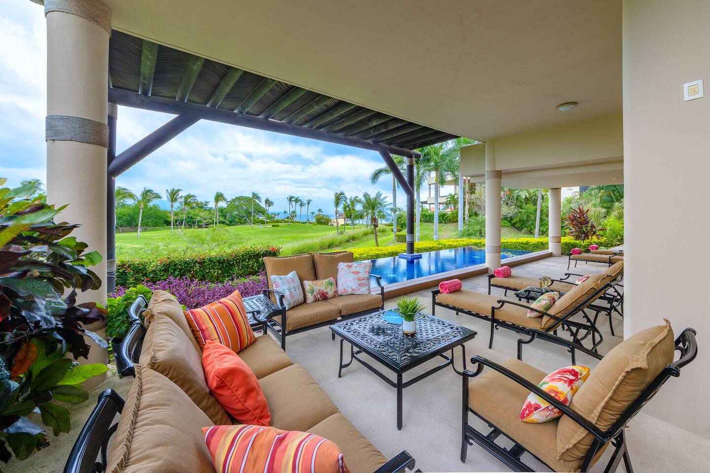 Privacy is the highlight of this stunning property. Perched above the Jack Nicklaus golf course, it offers panoramic views of the golf greens, Sierra Madre mountains, and Banderas Bay — a true hidden gem within Punta Mita Resort. This ground-floor condo features over 4,000 sq. ft. of indoor-outdoor living space, recent upgrades including new linens, towels, outdoor furniture, and the largest private infinity pool in the building.
