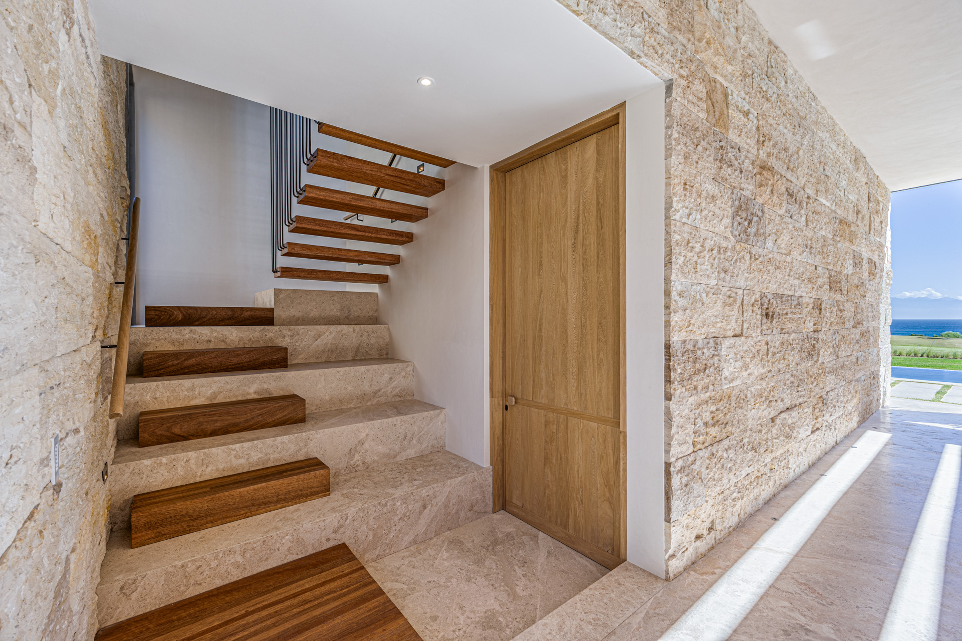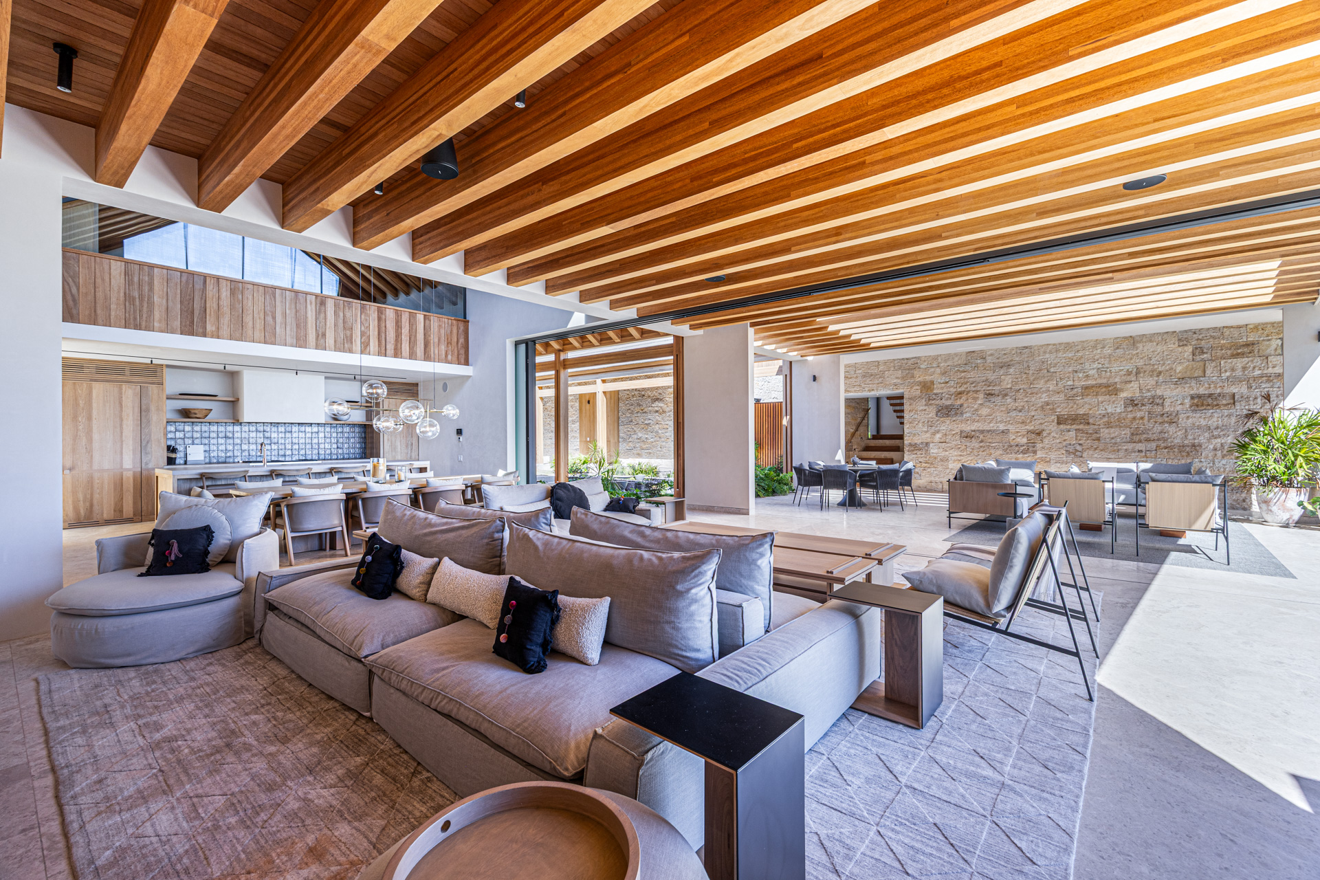 Lagos 11 is an exquisite five-bedroom luxury villa located within the prestigious Punta Mita resort complex, offering a refined balance of elegance, comfort, and coastal charm. Designed in a luxurious cabin style with high-pitched roofs, this unique residence blends sophisticated architecture with the relaxed atmosphere of the Pacific Ocean. At the heart of the villa, a charming circular fountain-lined corridor connects each space, creating a tranquil and cohesive indoor-outdoor flow.