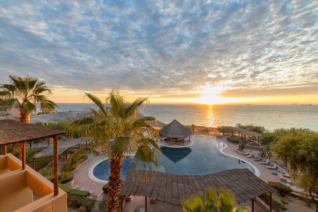Just steps apart but worlds away in character, these two beaches sit on either side of the rock formations near El Arco. Playa del Amor (Lover’s Beach) faces the calm, turquoise waters of the Sea of Cortez sheltered, swimmable, and ideal for anchoring. Playa del Divorcio (Divorce Beach) opens onto the raw Pacific, with powerful waves crashing against wide golden sand.