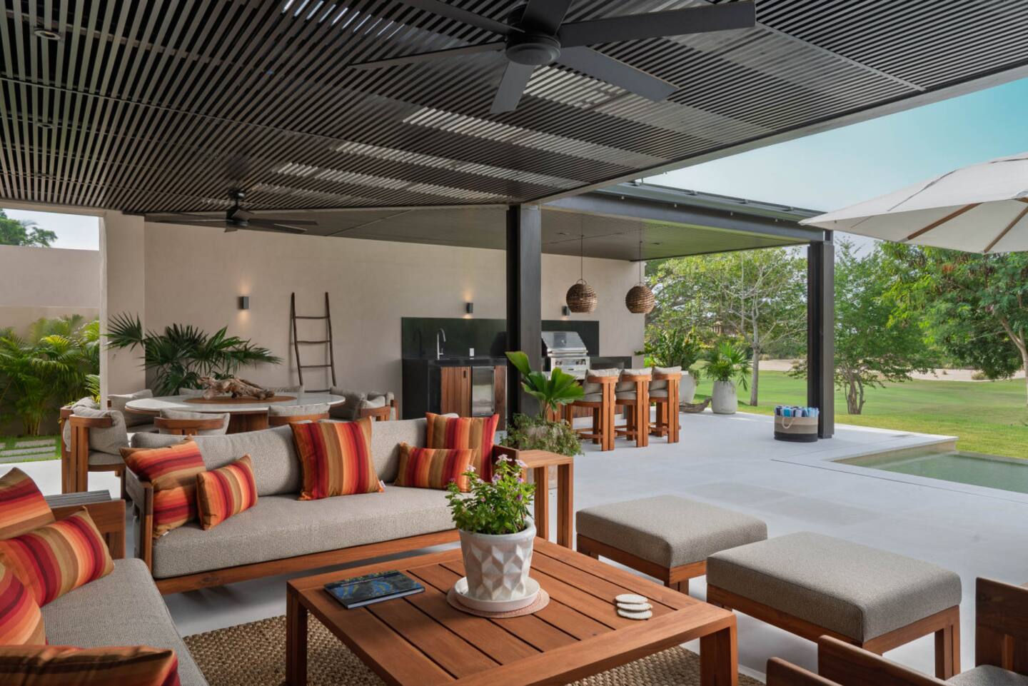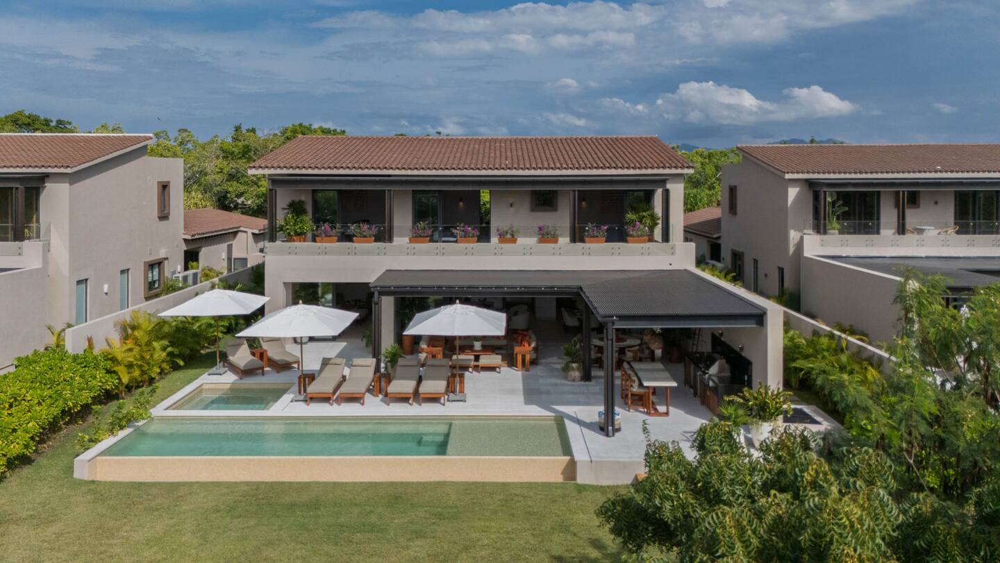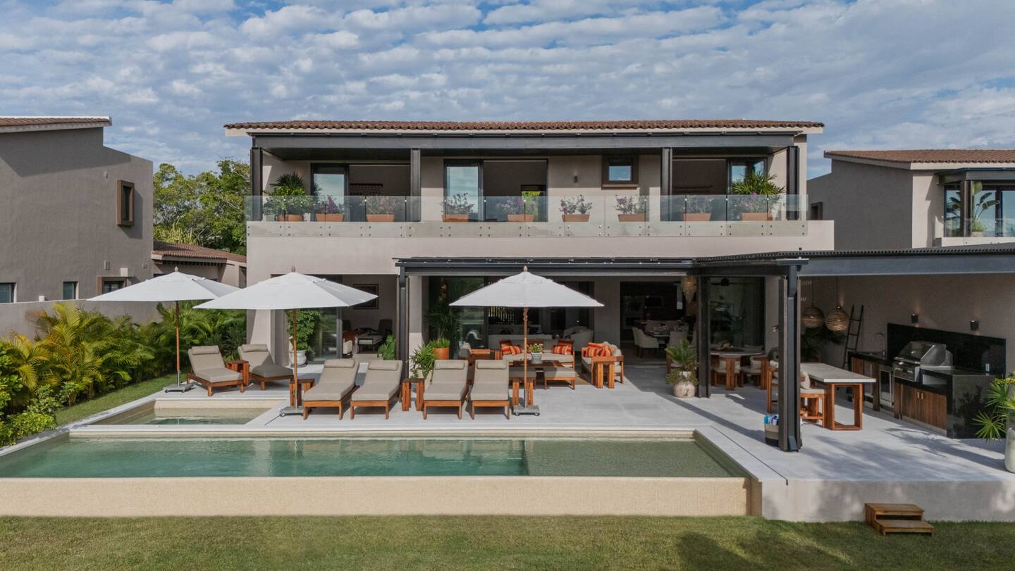 Villa Amada is a private contemporary villa located in the exclusive Porta Fortuna community of Punta Mita, overlooking the lush fairways of the Jack Nicklaus golf course. This two-story residence offers a relaxed yet elegant retreat for families and groups, combining modern architecture with high-end finishes in a secure and prestigious setting.