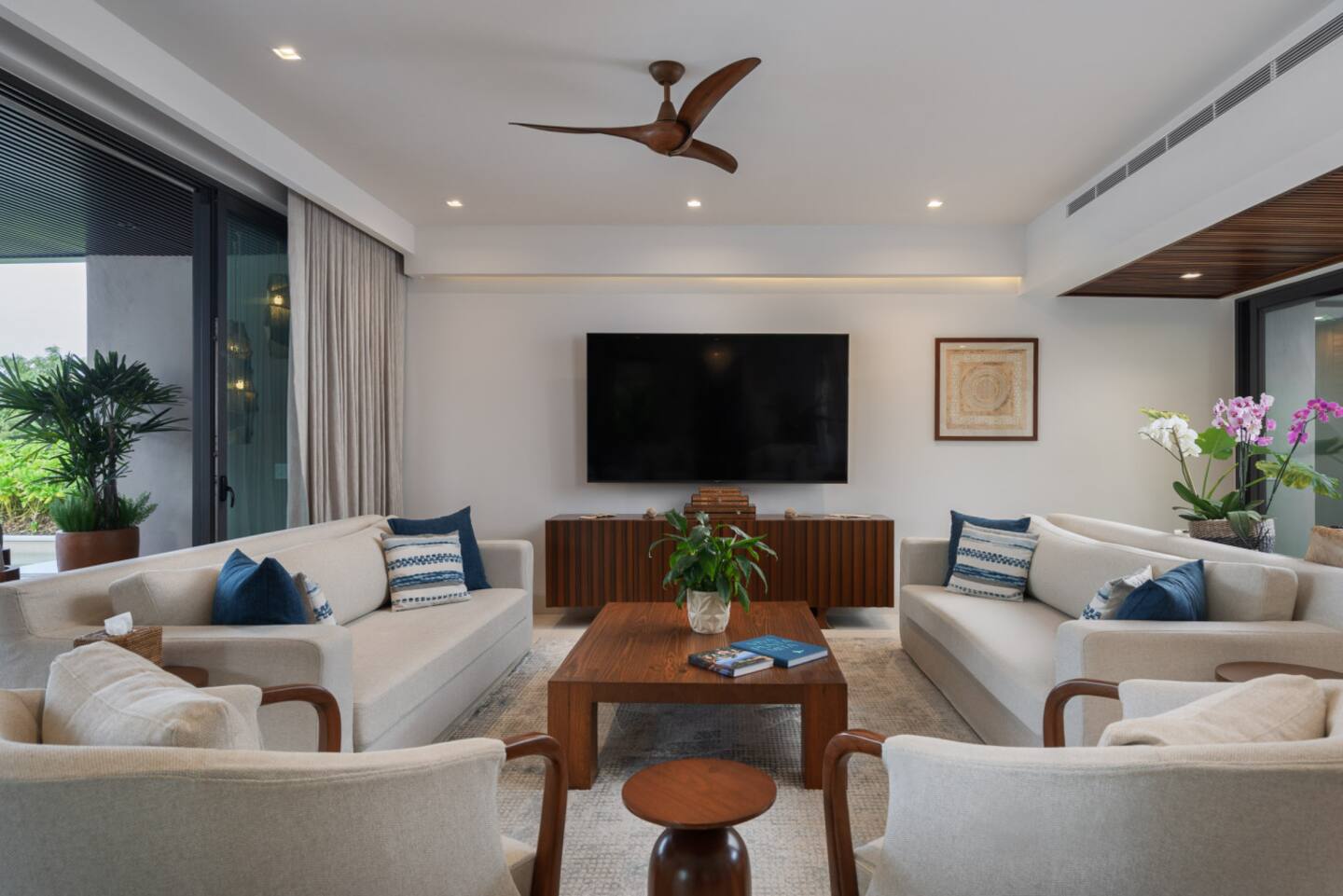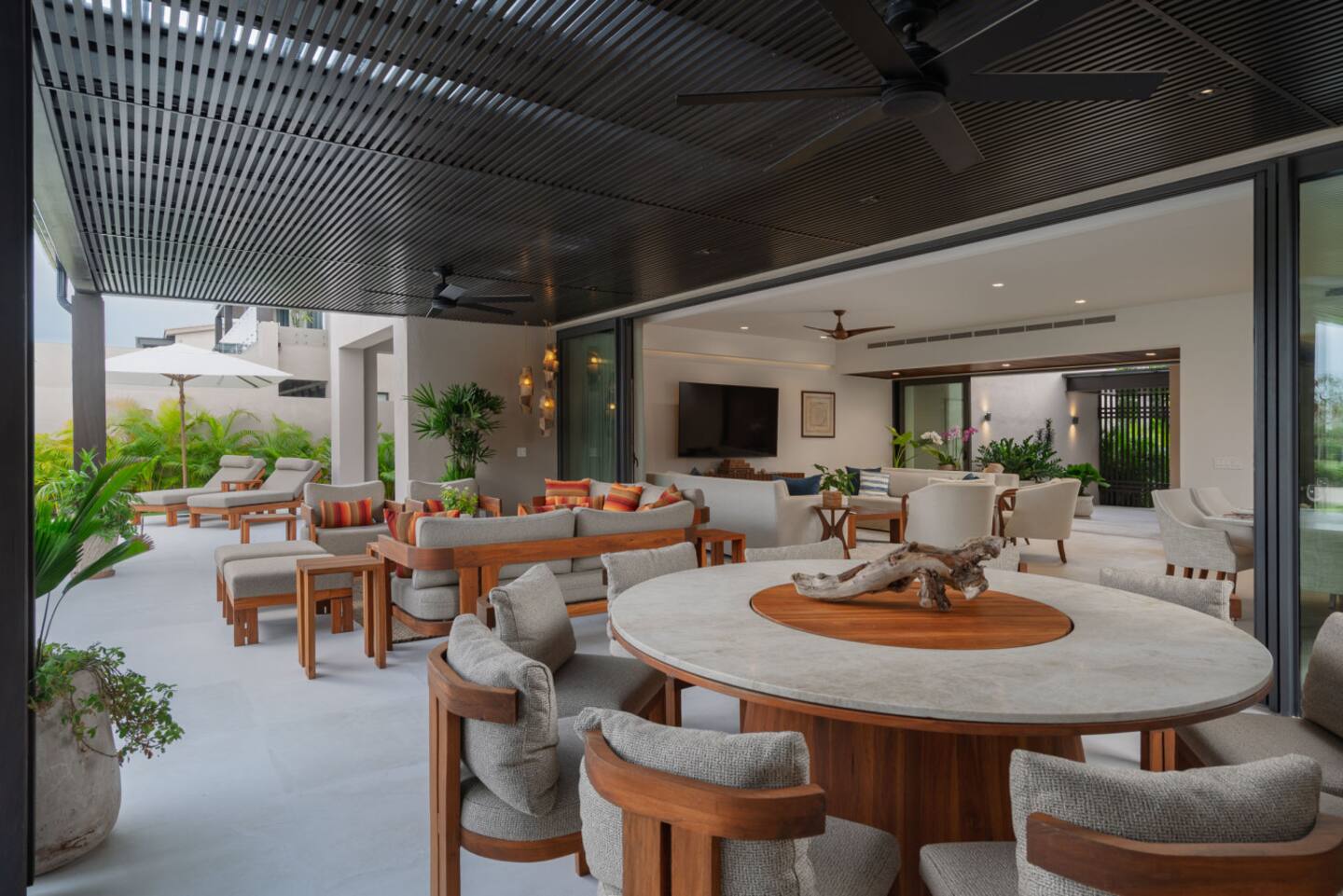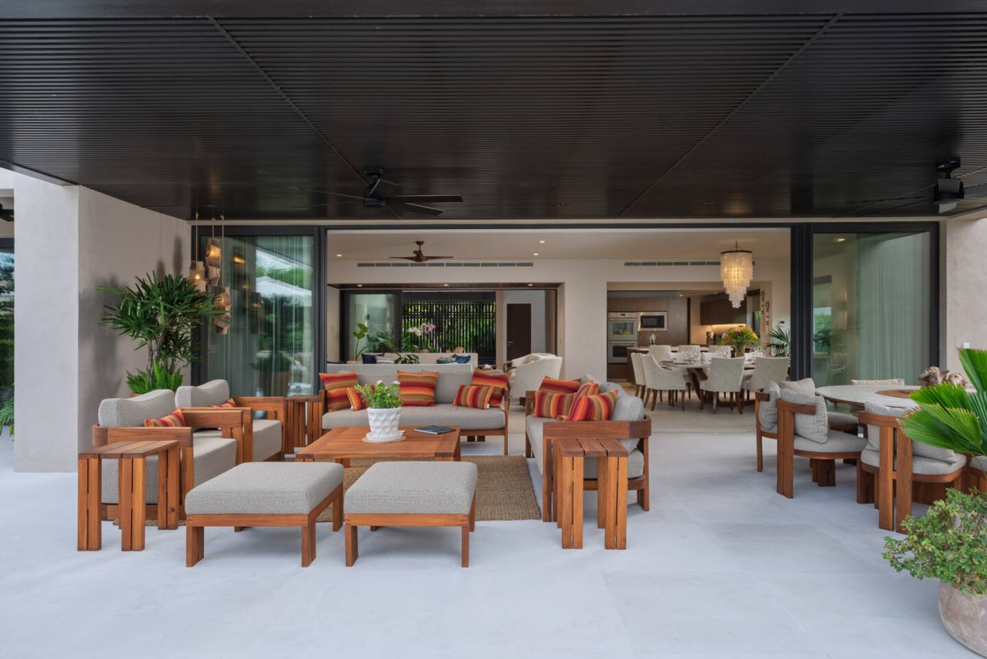 Villa Amada is a private contemporary villa located in the exclusive Porta Fortuna community of Punta Mita, overlooking the lush fairways of the Jack Nicklaus golf course. This two-story residence offers a relaxed yet elegant retreat for families and groups, combining modern architecture with high-end finishes in a secure and prestigious setting.