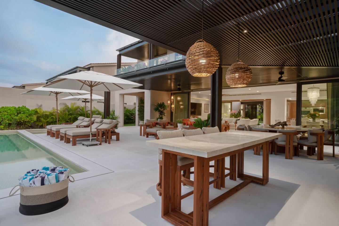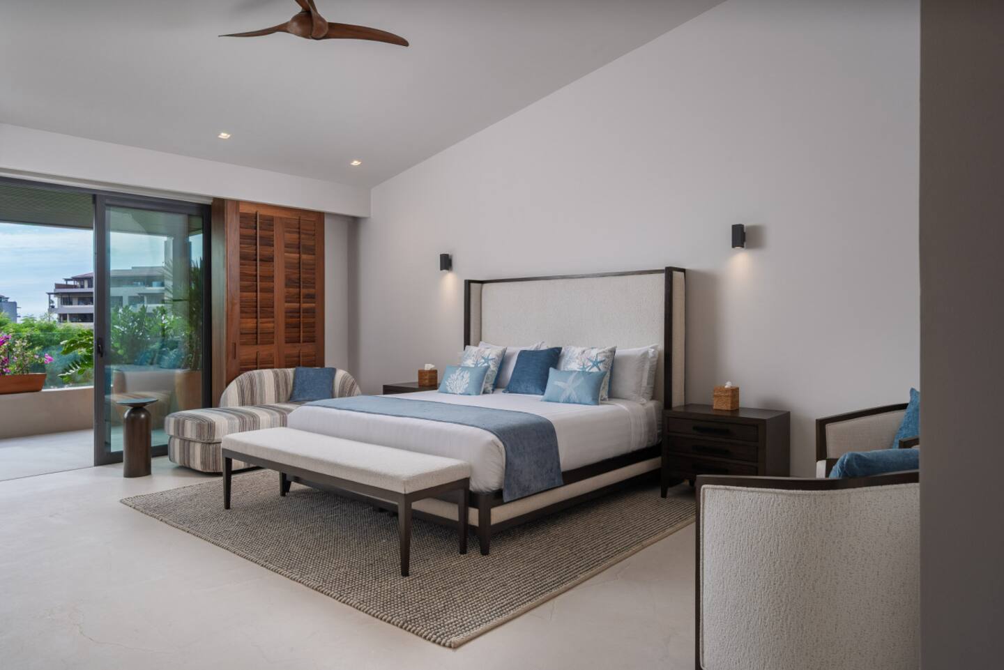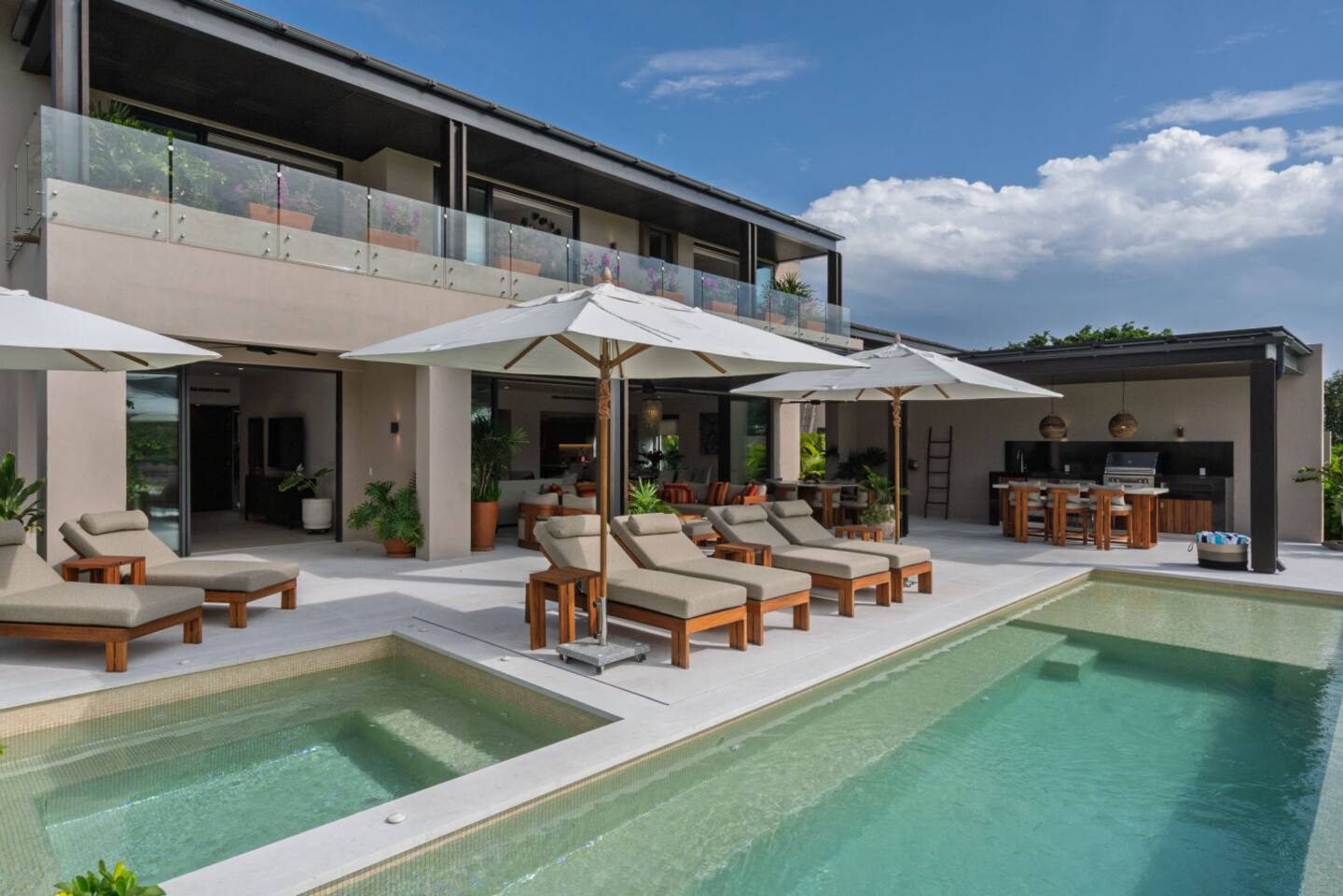 The villa features spacious indoor and outdoor areas, a private plunge pool, jacuzzi, and a terrace with outdoor dining, lounge seating, and a built-in grill, ideal for evenings under the stars. Guests enjoy daily housekeeping, breakfast and snack preparation, personalized concierge services, and a six-passenger golf cart included at check-in for effortless mobility within Punta Mita.