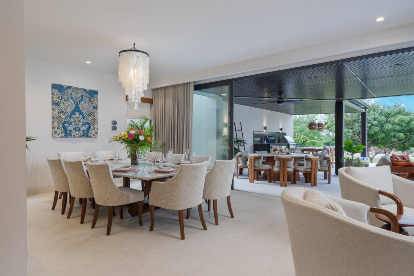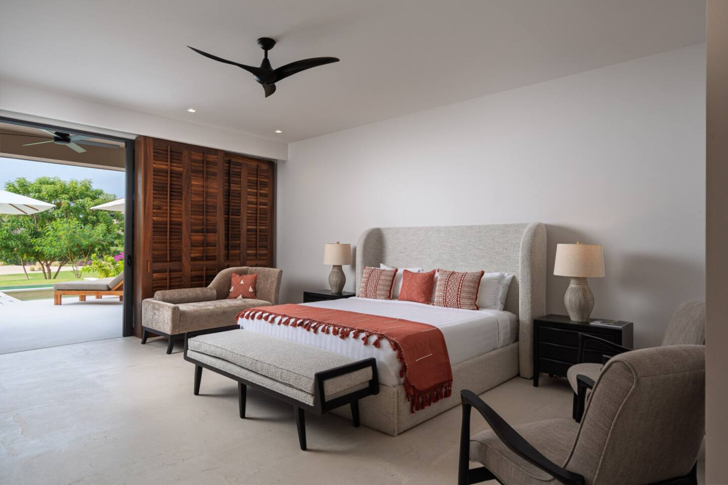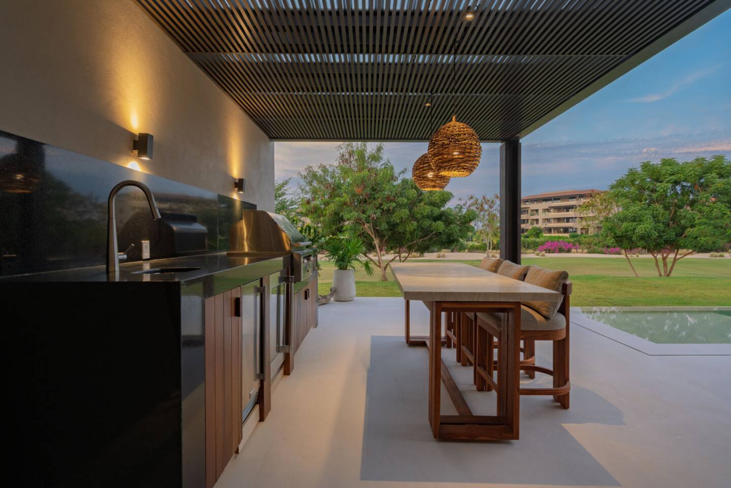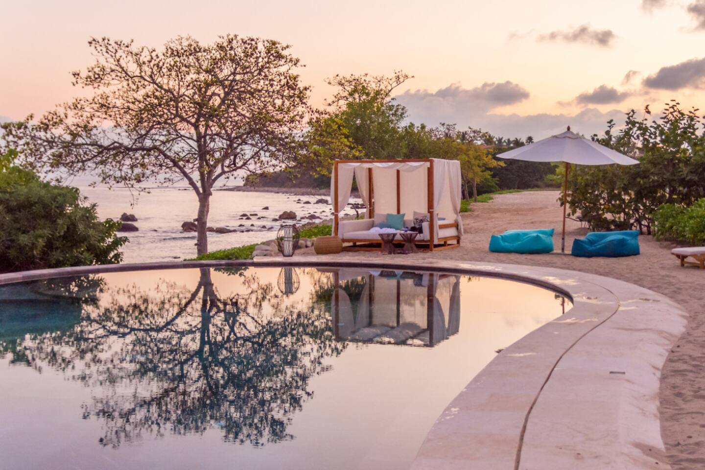 The villa features spacious indoor and outdoor areas, a private plunge pool, jacuzzi, and a terrace with outdoor dining, lounge seating, and a built-in grill, ideal for evenings under the stars. Guests enjoy daily housekeeping, breakfast and snack preparation, personalized concierge services, and a six-passenger golf cart included at check-in for effortless mobility within Punta Mita.
