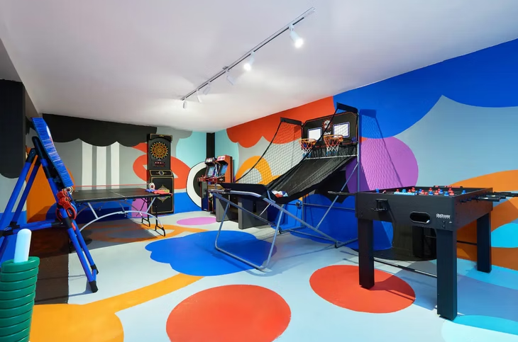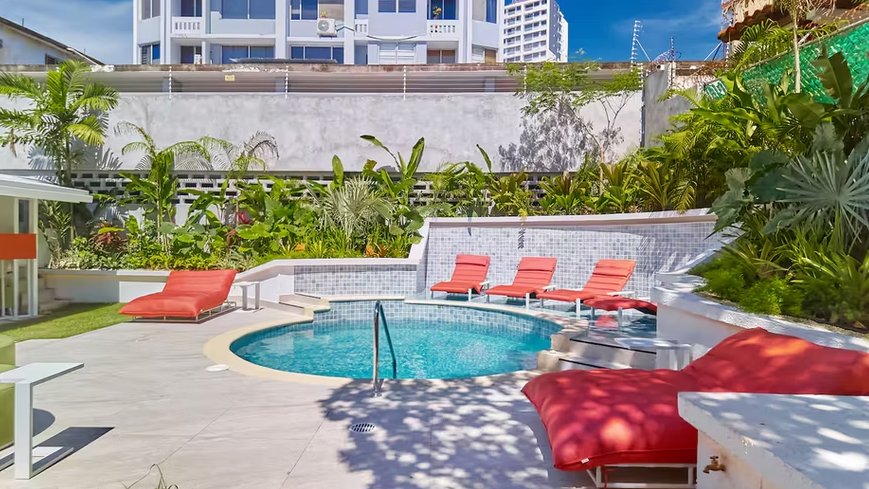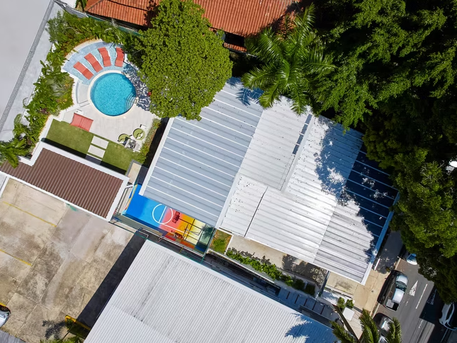 The villa features a large terrace, a front patio, and multiple leisure spaces including a swimming pool, gym, basketball court, and private movie theater. Surrounded by restaurants, cafés, parks, and cultural spots, Villa El Cangrejo places you within walking distance of everything you need, with easy access to main avenues, public transportation, and Panama City’s top attractions.