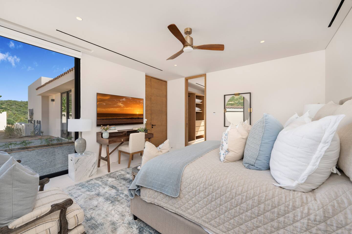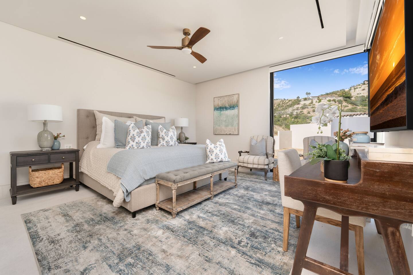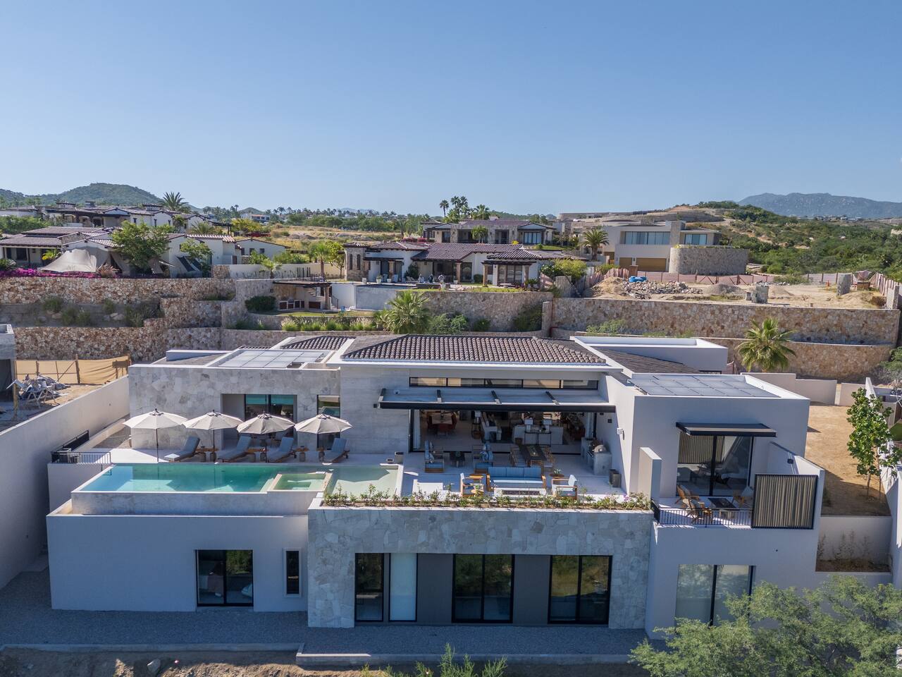 This luxury hillside villa is located inside the gated community of Querencia, offering breathtaking ocean and mountain views and seamless indoor-outdoor living. Designed for families gathering together or groups celebrating special moments, the villa provides generous shared spaces while ensuring privacy for every guest. Just minutes from swimmable beaches, world-class golf, and the San José del Cabo Art District, this private retreat is supported by full concierge services to guarantee a smooth and memorable stay.