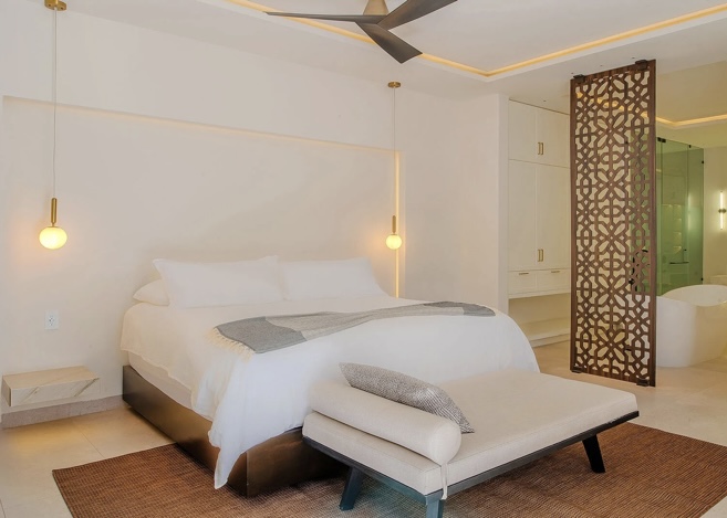 Bedroom 2 (Casita): King bed, ocean view, private terrace, en-suite bath