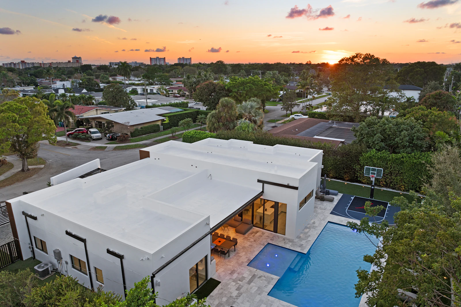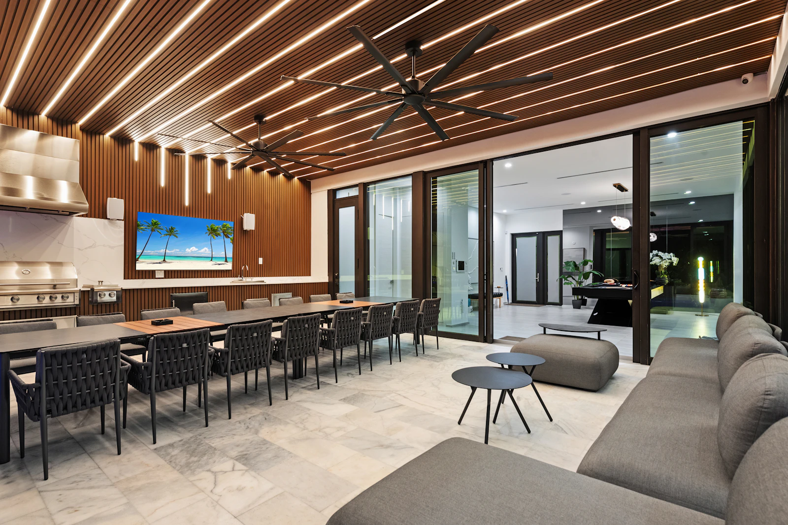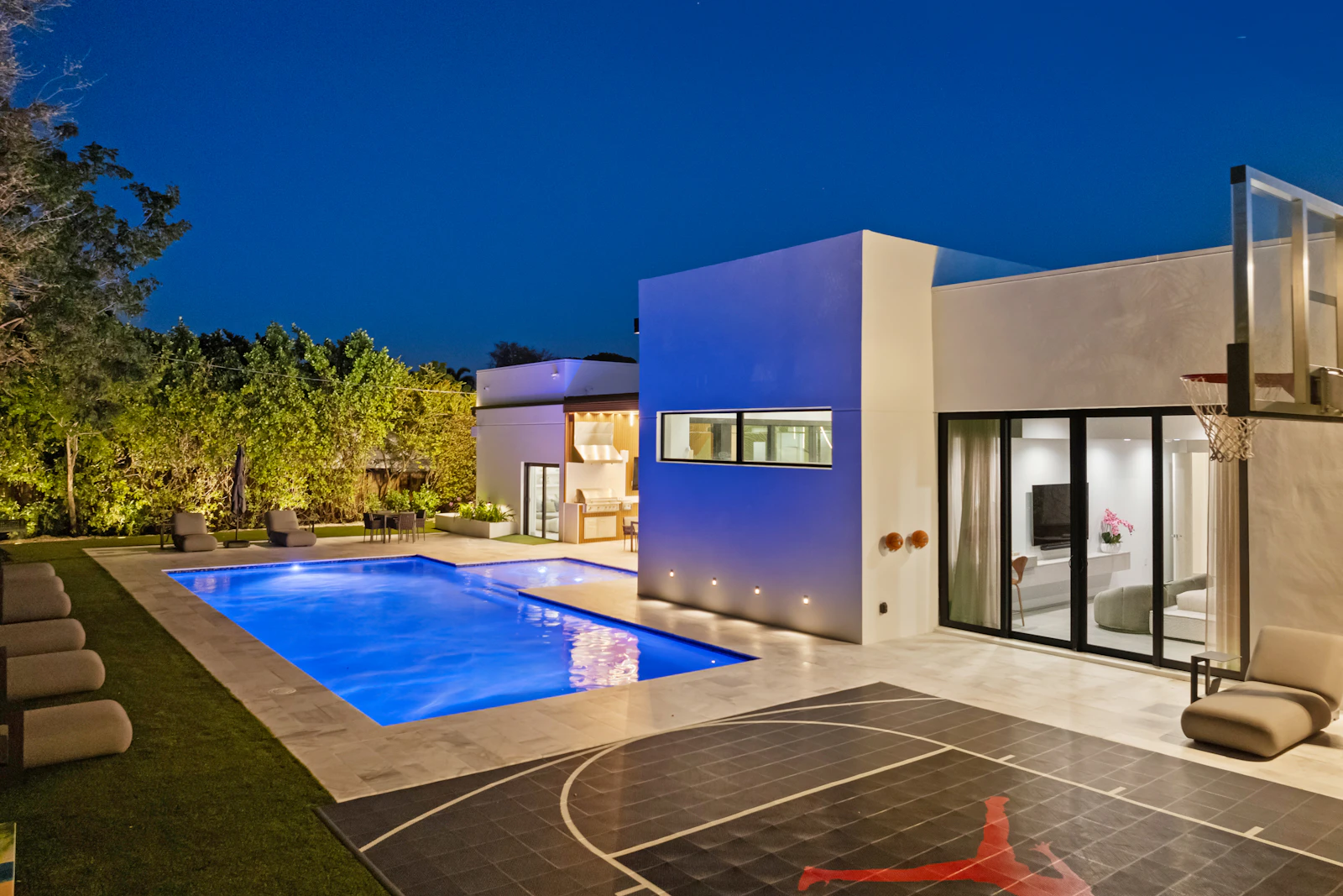 With indoor and outdoor gourmet kitchens, a heated saltwater pool, half basketball court, billiards table, and a Sonos sound system throughout the property, Villa Maya offers a private, gated retreat with ample parking and close proximity to beaches, upscale dining, shopping, and three nearby synagogues.