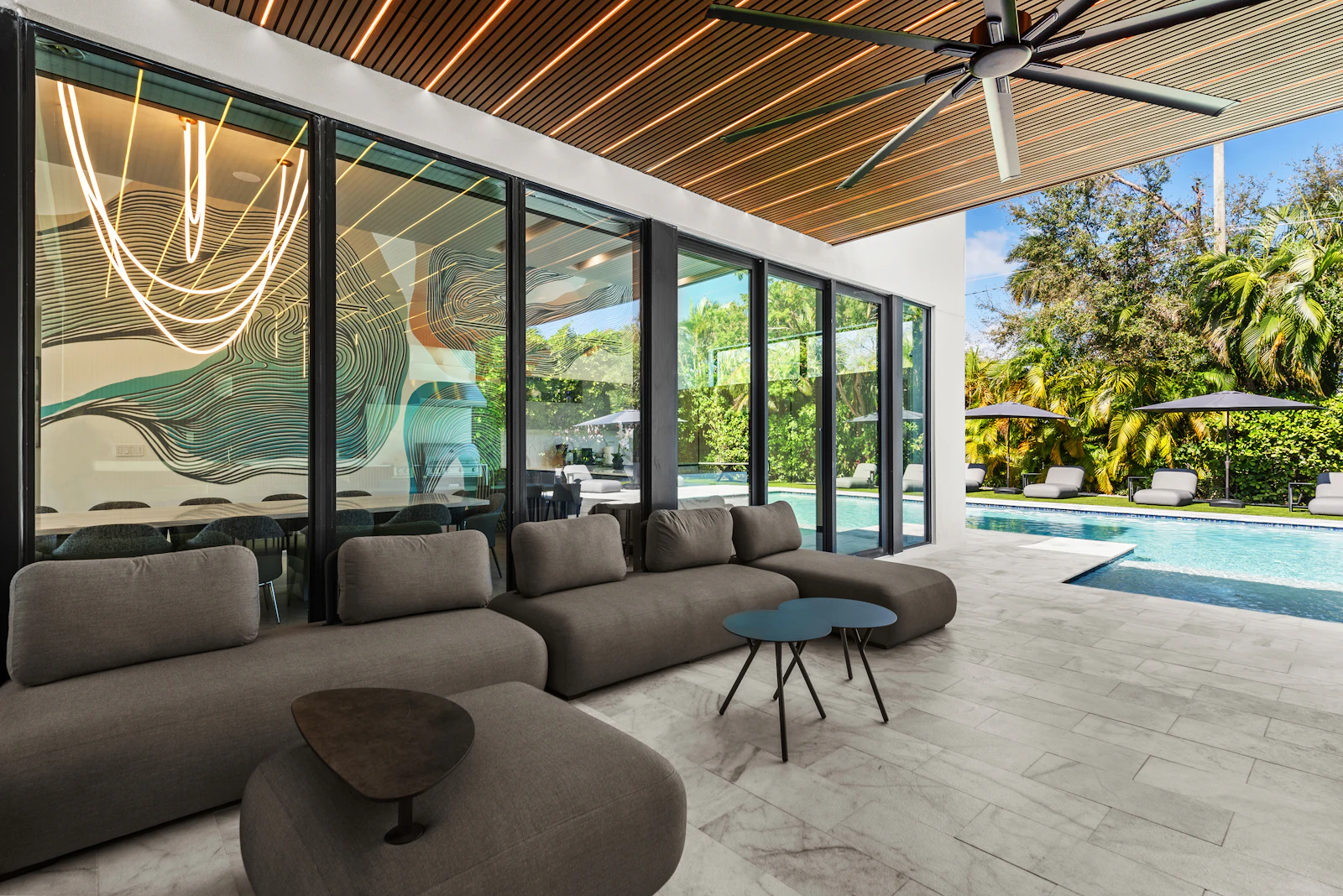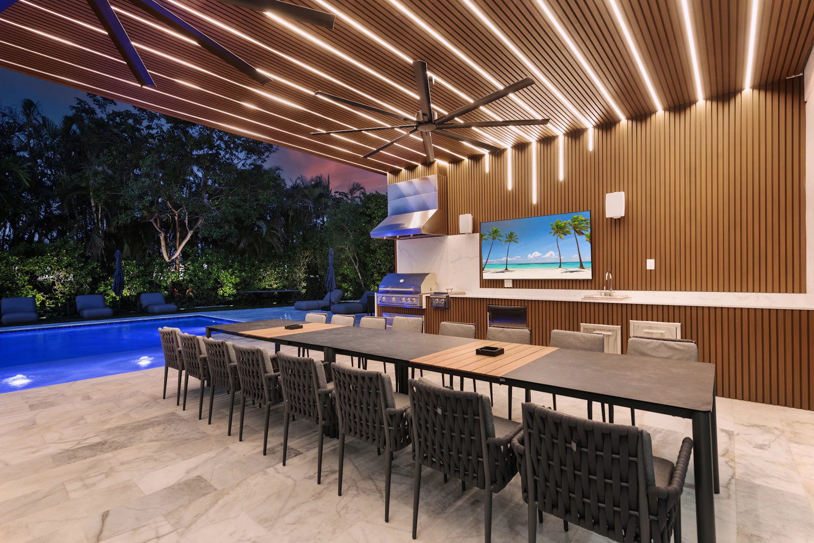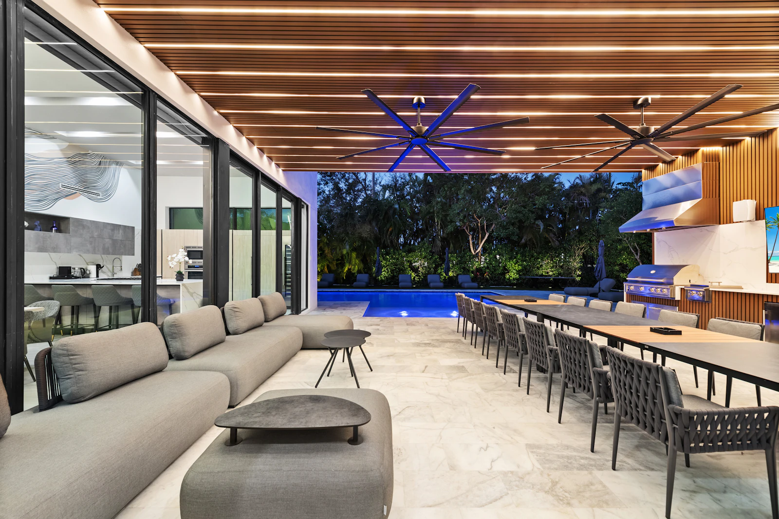 With indoor and outdoor gourmet kitchens, a heated saltwater pool, half basketball court, billiards table, and a Sonos sound system throughout the property, Villa Maya offers a private, gated retreat with ample parking and close proximity to beaches, upscale dining, shopping, and three nearby synagogues.