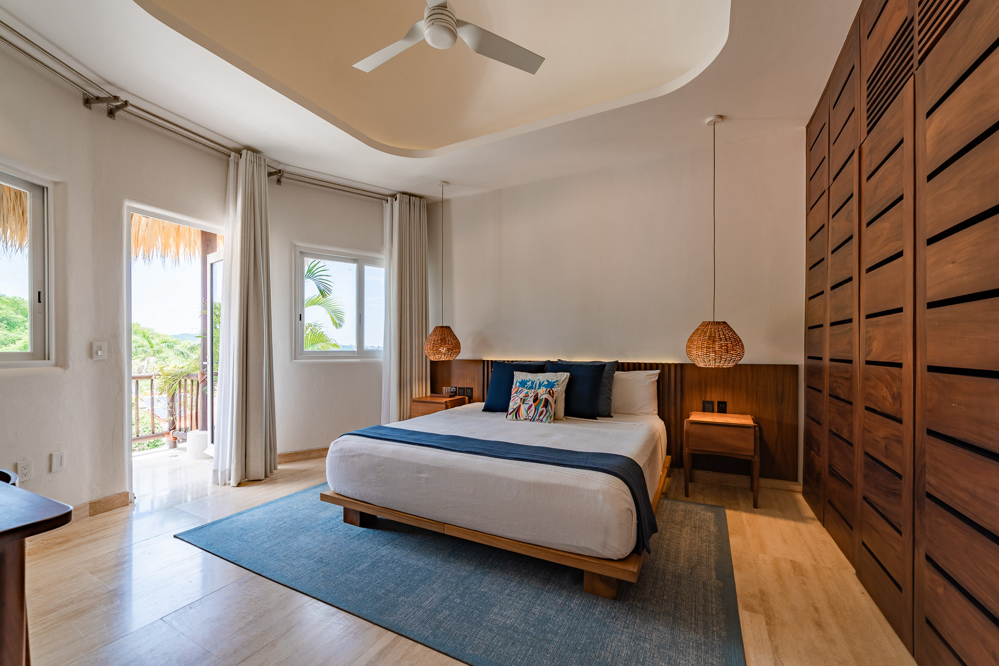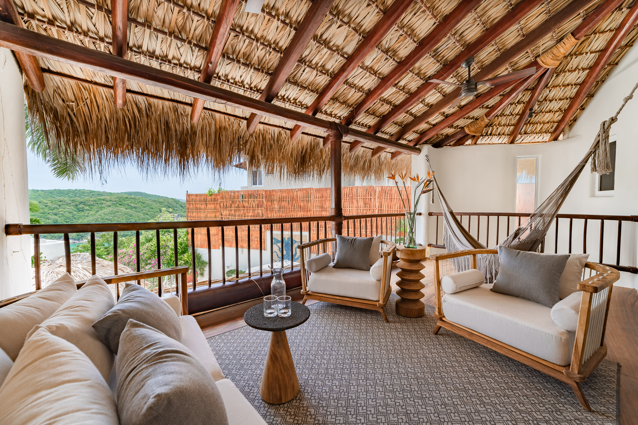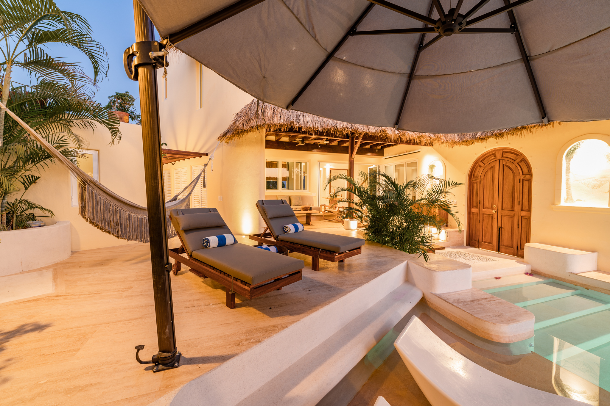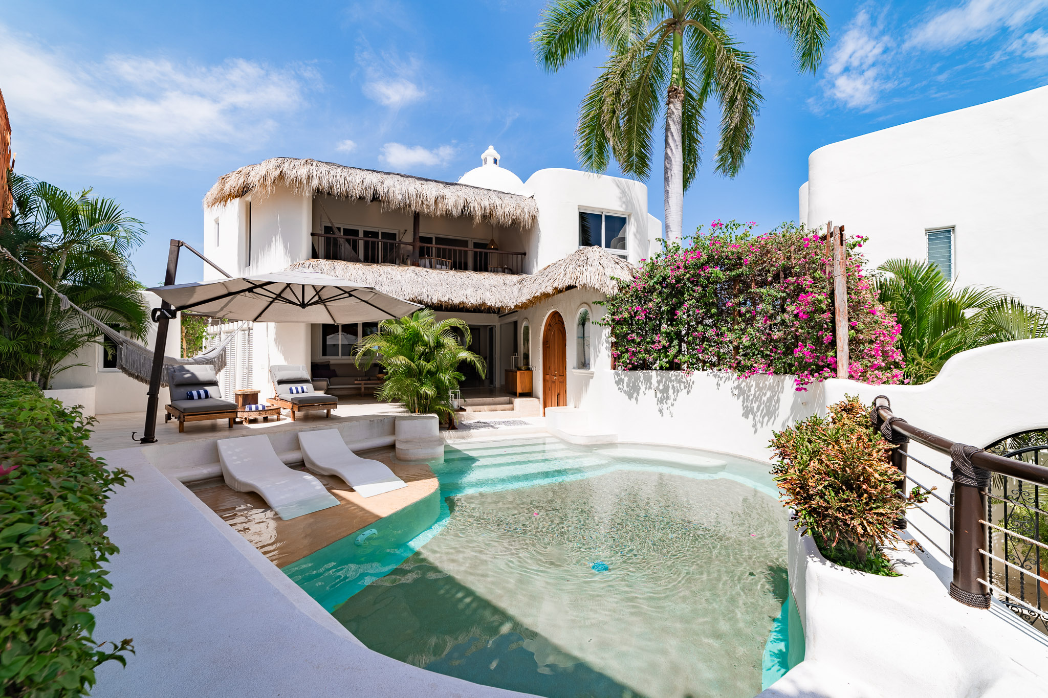 Hosted by My Huatulco Vacation, Villa Maya is a luxury villa located in the exclusive gated community of Sueño Real. This recently renovated property, with professionally designed interiors completed in late 2021, offers an elegant and tropical retreat. Overlooking Huatulco’s Santa Cruz Bay, this villa provides the perfect setting for a serene and unforgettable vacation. Enter through the arched wooden doorway and step into your private paradise. The villa features a sun-kissed pool with built-in loungers, a spacious outdoor courtyard with comfortable seating, additional sun loungers, and a hammock. A separate guest suite with a full bath provides a private retreat for a teenager or single adult.