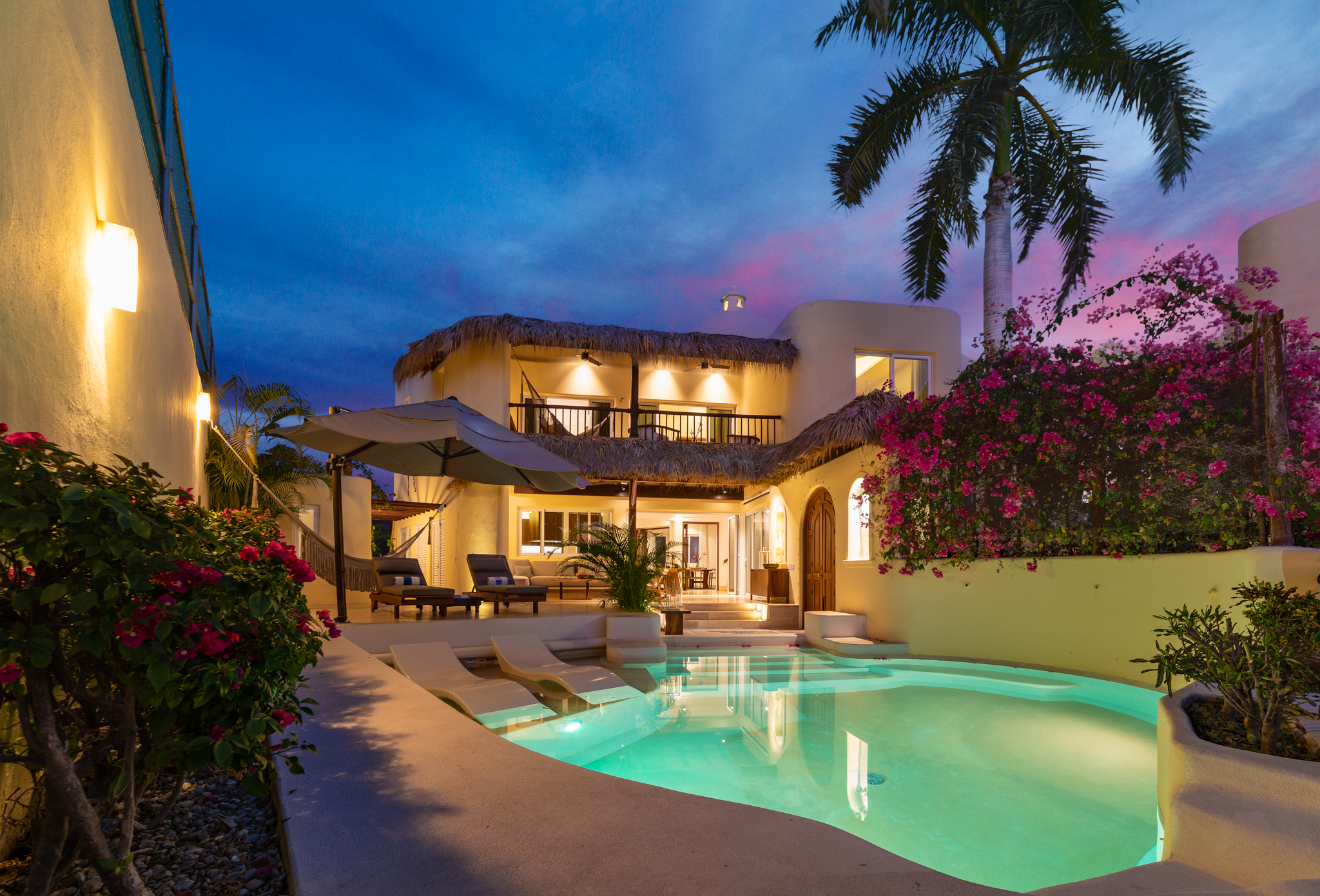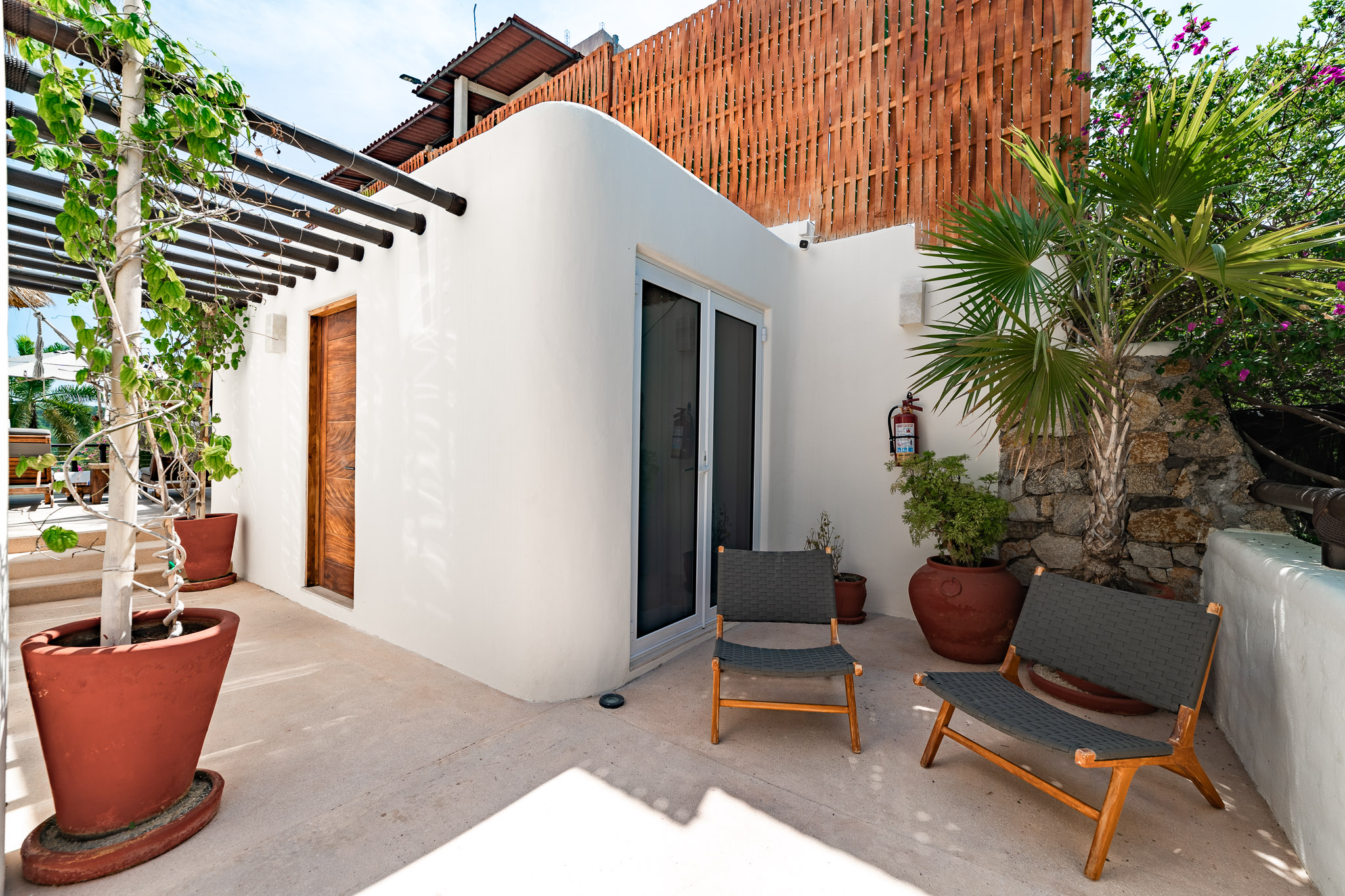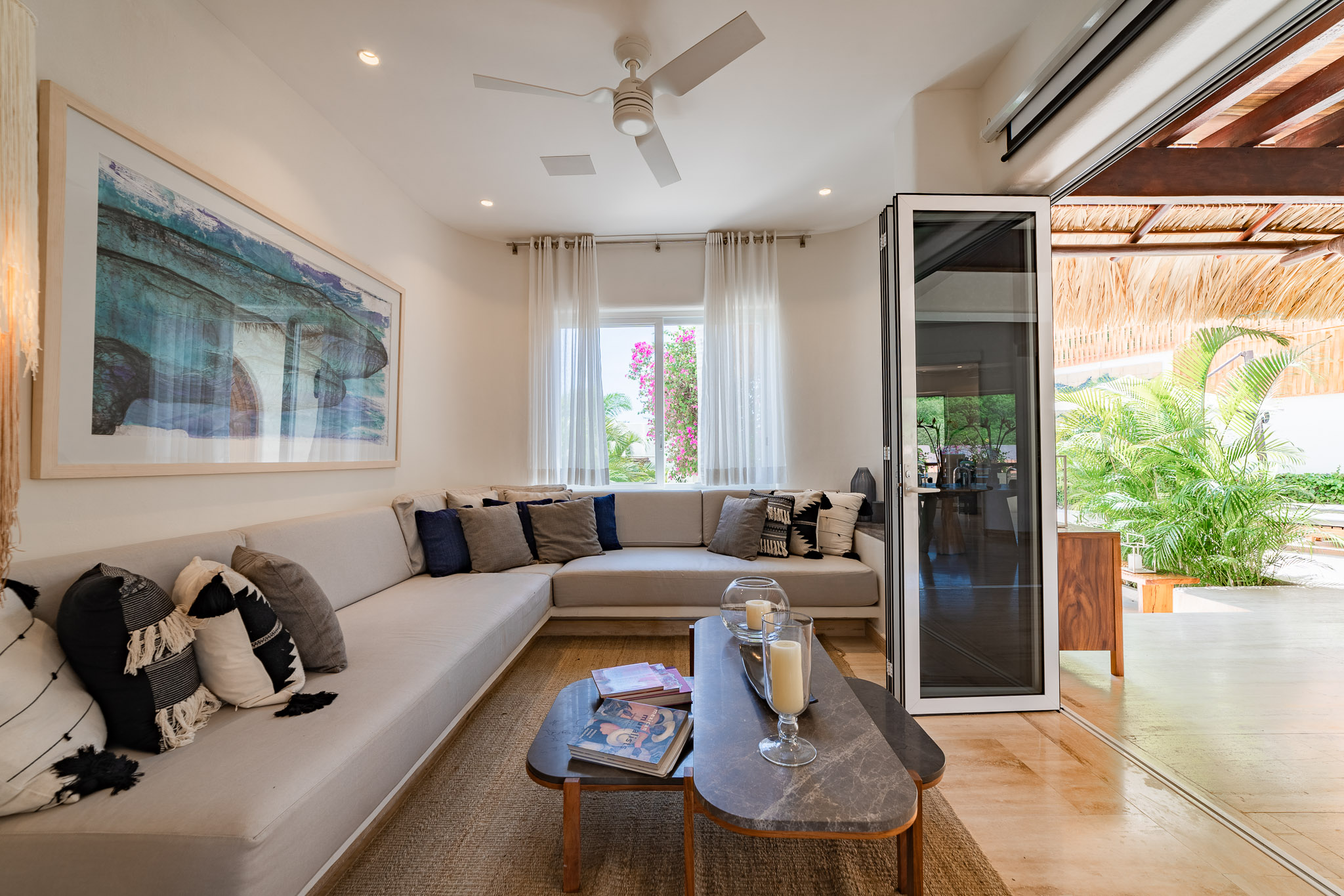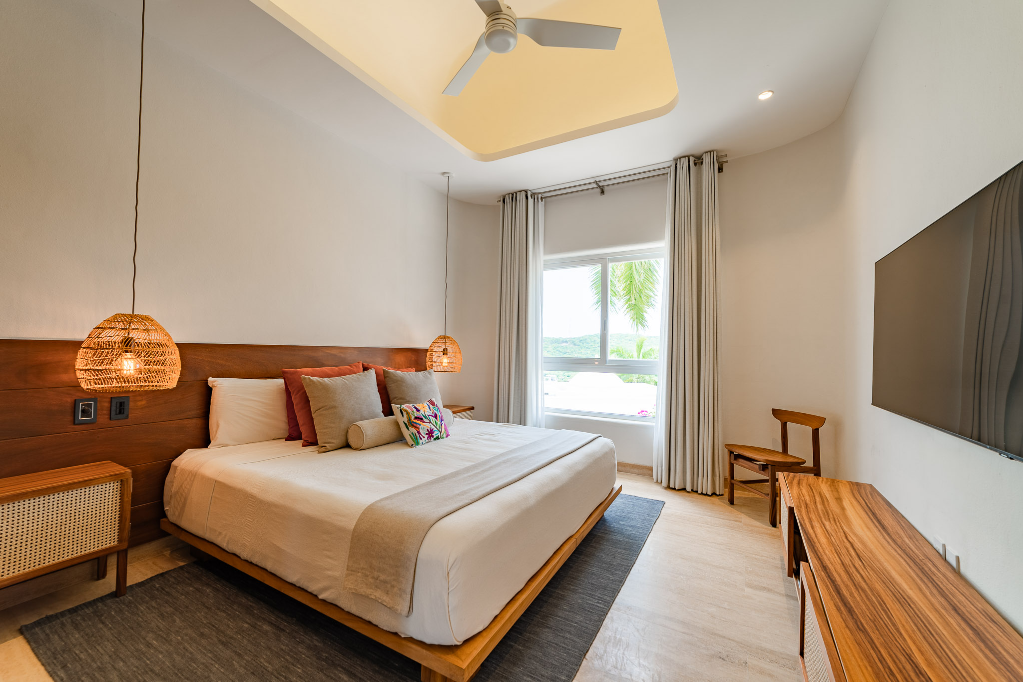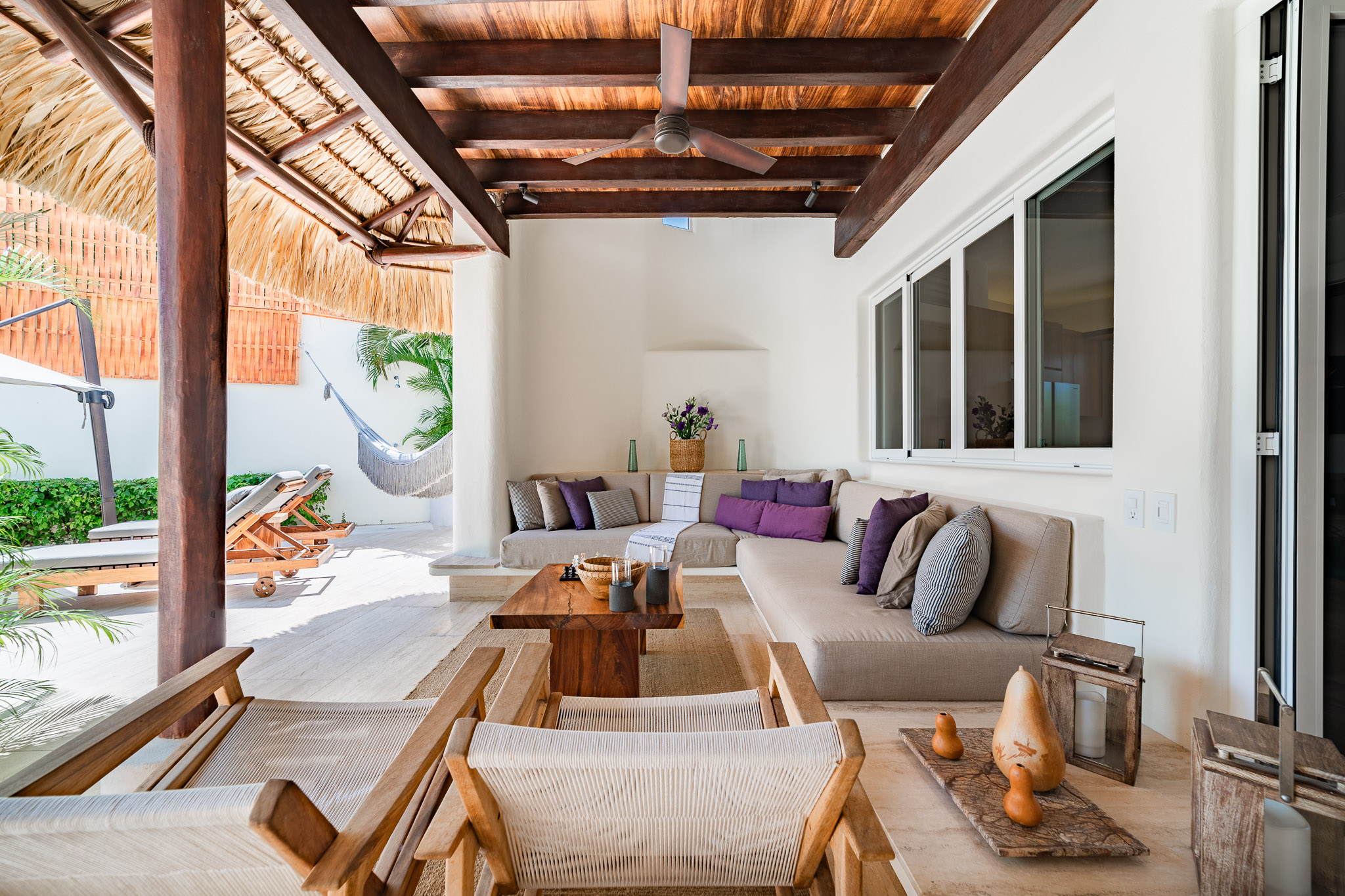 Hosted by My Huatulco Vacation, Villa Maya is a luxury villa located in the exclusive gated community of Sueño Real. This recently renovated property, with professionally designed interiors completed in late 2021, offers an elegant and tropical retreat. Overlooking Huatulco’s Santa Cruz Bay, this villa provides the perfect setting for a serene and unforgettable vacation. Enter through the arched wooden doorway and step into your private paradise. The villa features a sun-kissed pool with built-in loungers, a spacious outdoor courtyard with comfortable seating, additional sun loungers, and a hammock. A separate guest suite with a full bath provides a private retreat for a teenager or single adult.