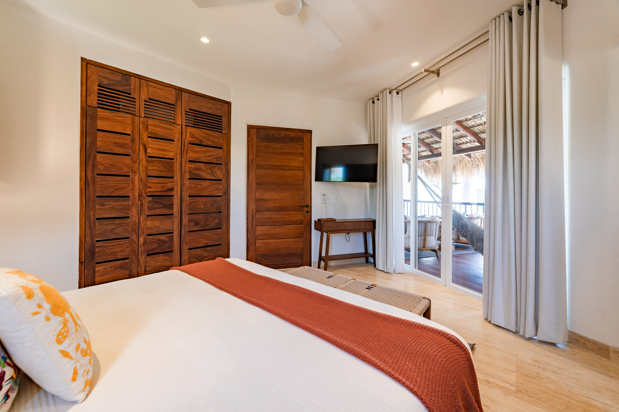 • Guest Suite 2: King-size bed, ensuite bathroom, A/C, Smart TV, terrace access with ocean views.