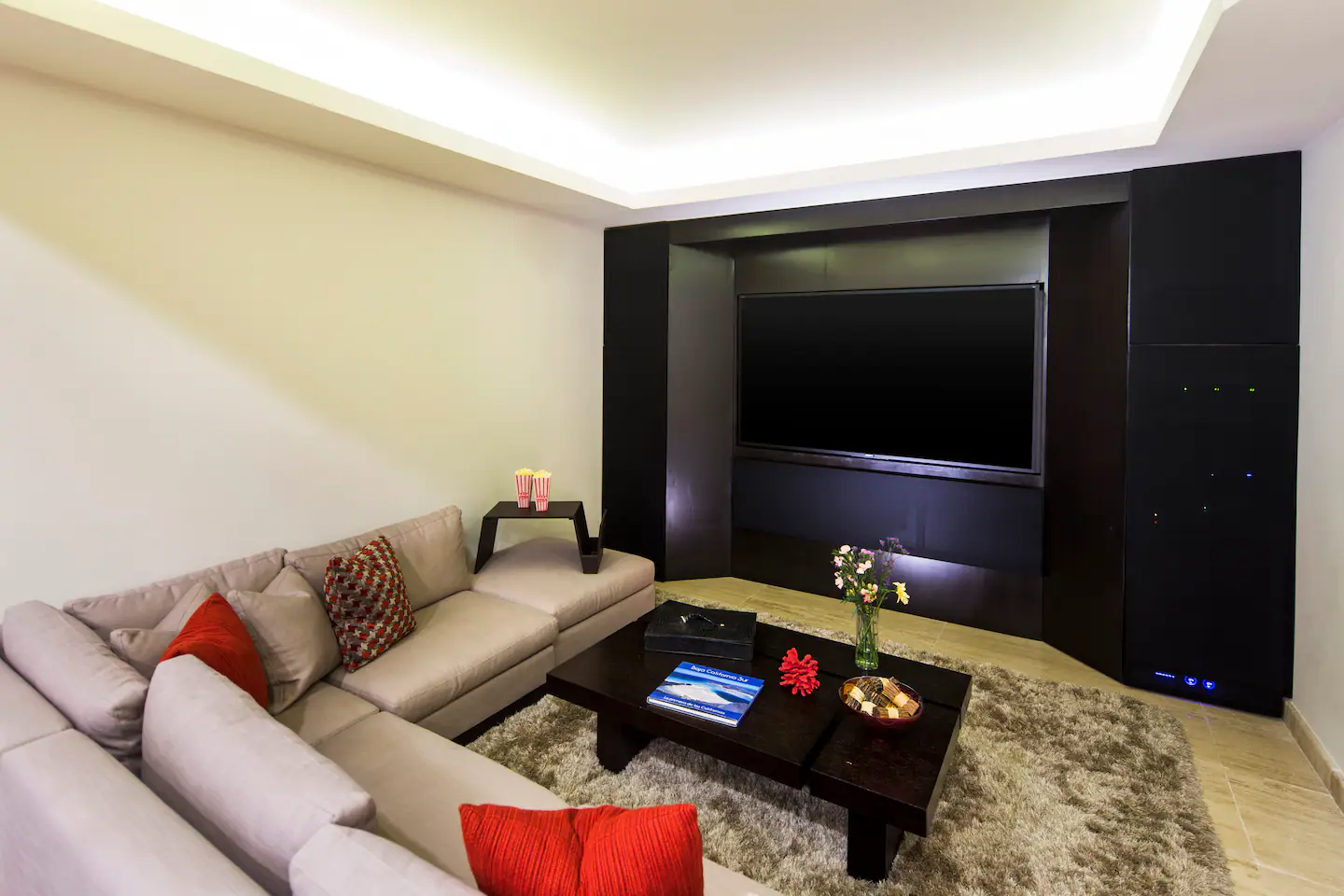 The villa offers breathtaking views of the Sea of Cortez and the Pacific Ocean, along with expansive indoor and outdoor living spaces. Guests can enjoy a private rooftop terrace with a pool and jacuzzi, spa lounge with sauna and steam room, full-size gourmet kitchen, spacious dining and living areas, and multiple relaxation zones. Villa Renata is adults-only and includes on-site staff support, ensuring a comfortable and elevated stay in one of Cabo’s most exclusive communities.