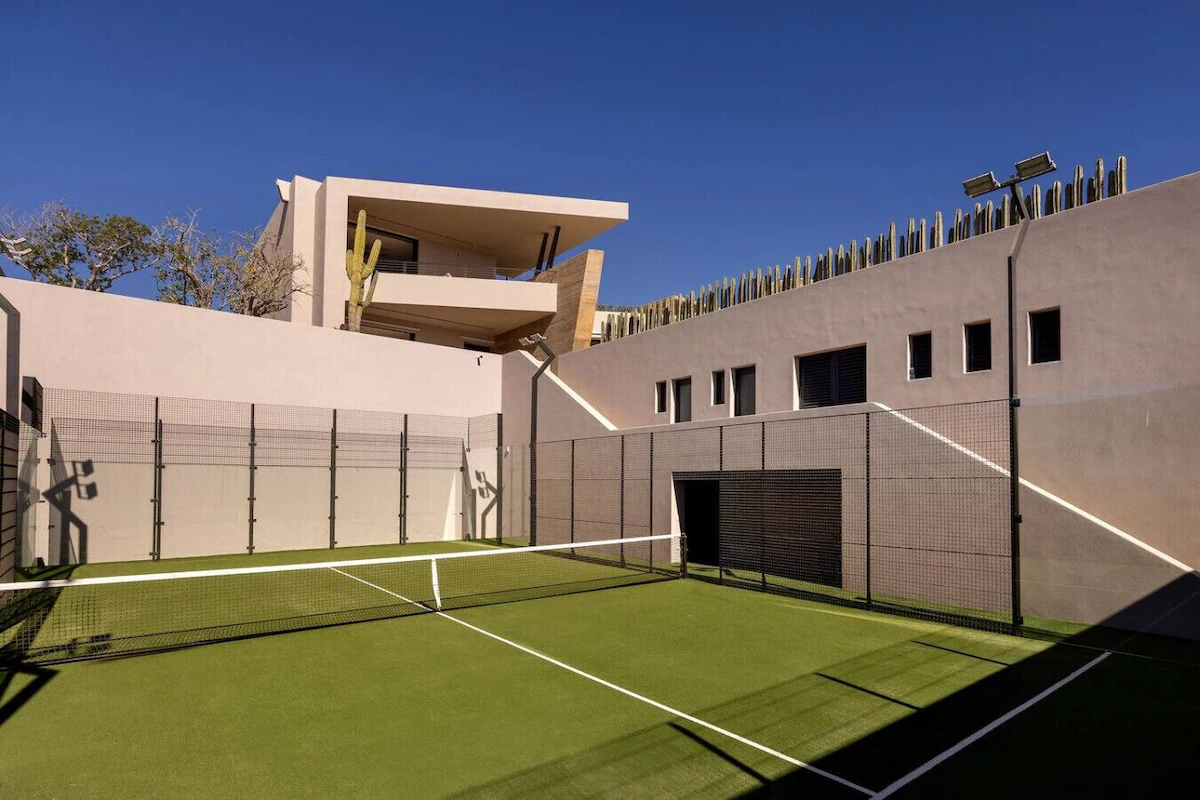 Guests can wake up to the sound of the waves, relax in the infinity-edge pool overlooking the horizon, or enjoy a match on the private paddle tennis court. The outdoor kitchen and al fresco dining area are perfect for memorable meals, while multiple lounge spaces invite you to unwind. With a private chef and a dedicated house manager, every detail is handled, and guests also enjoy access to championship golf courses, a crystal lagoon, and a luxury fitness center and spa within the Diamante community.