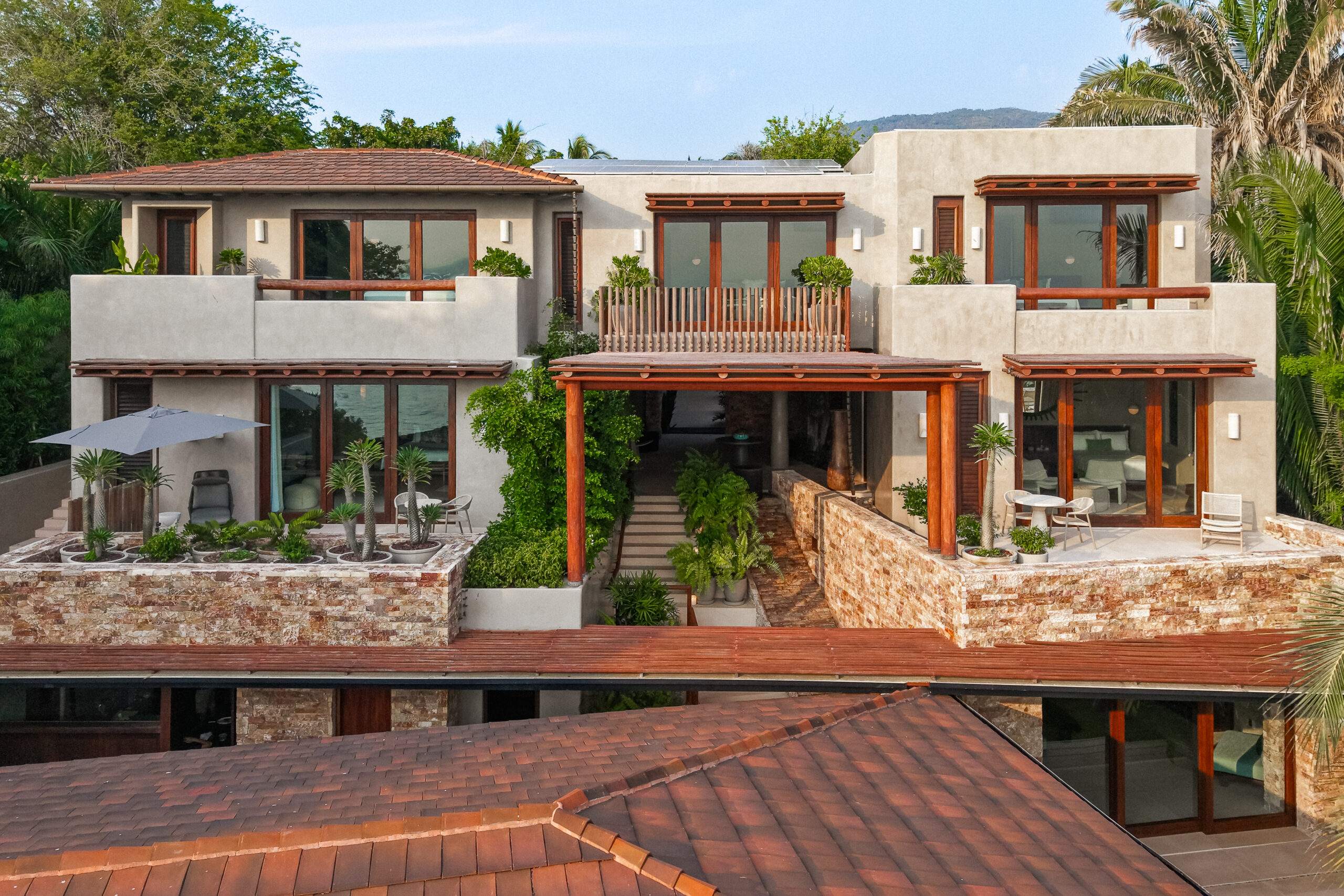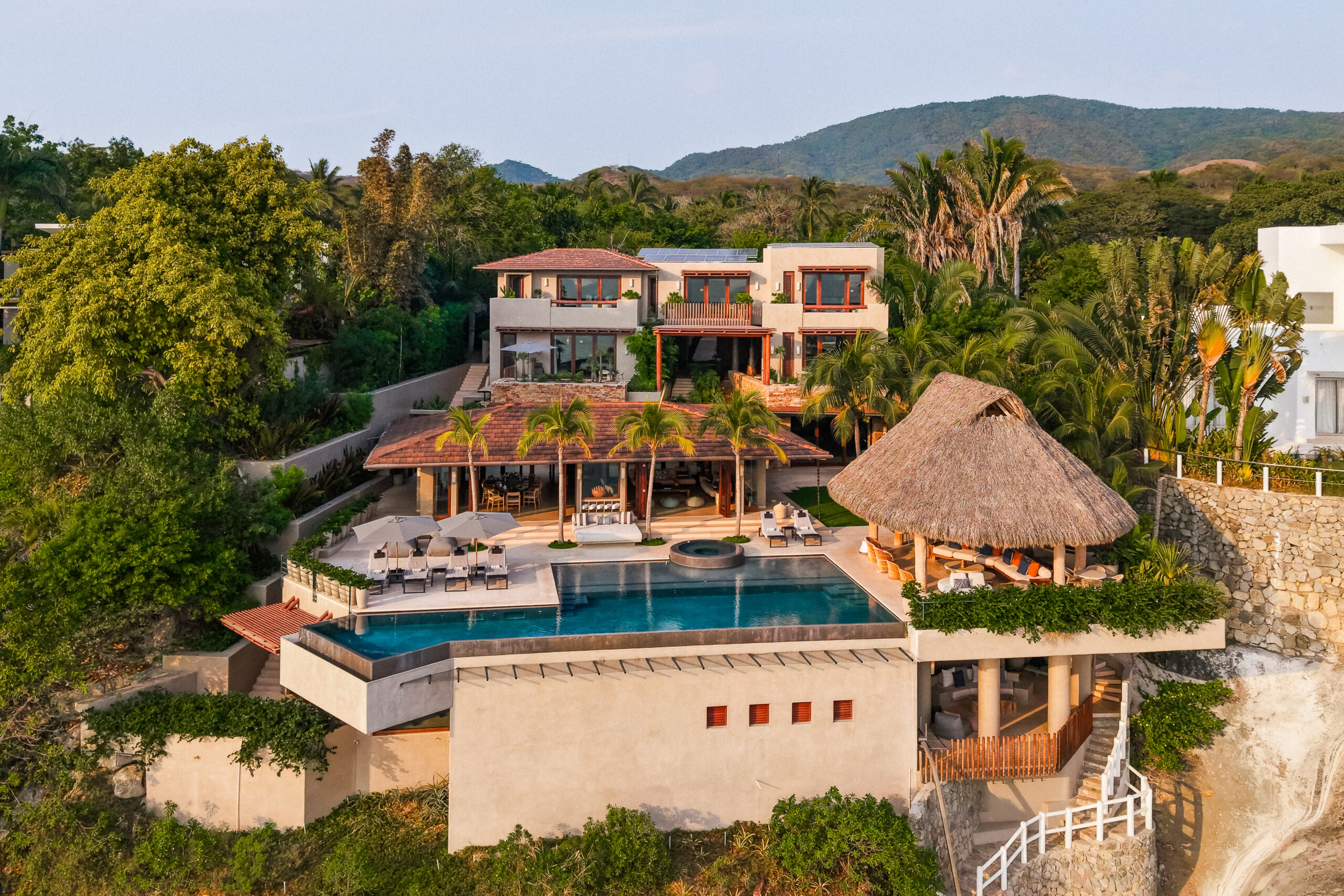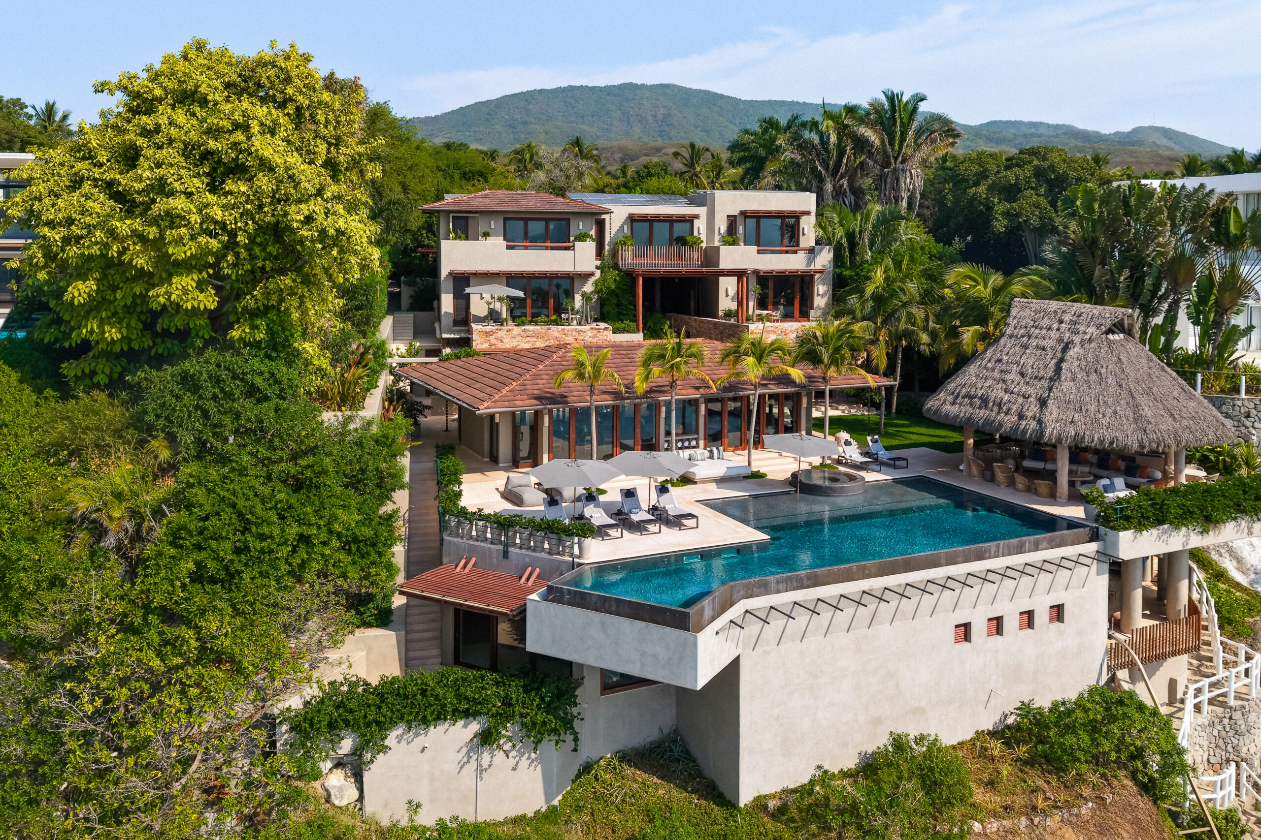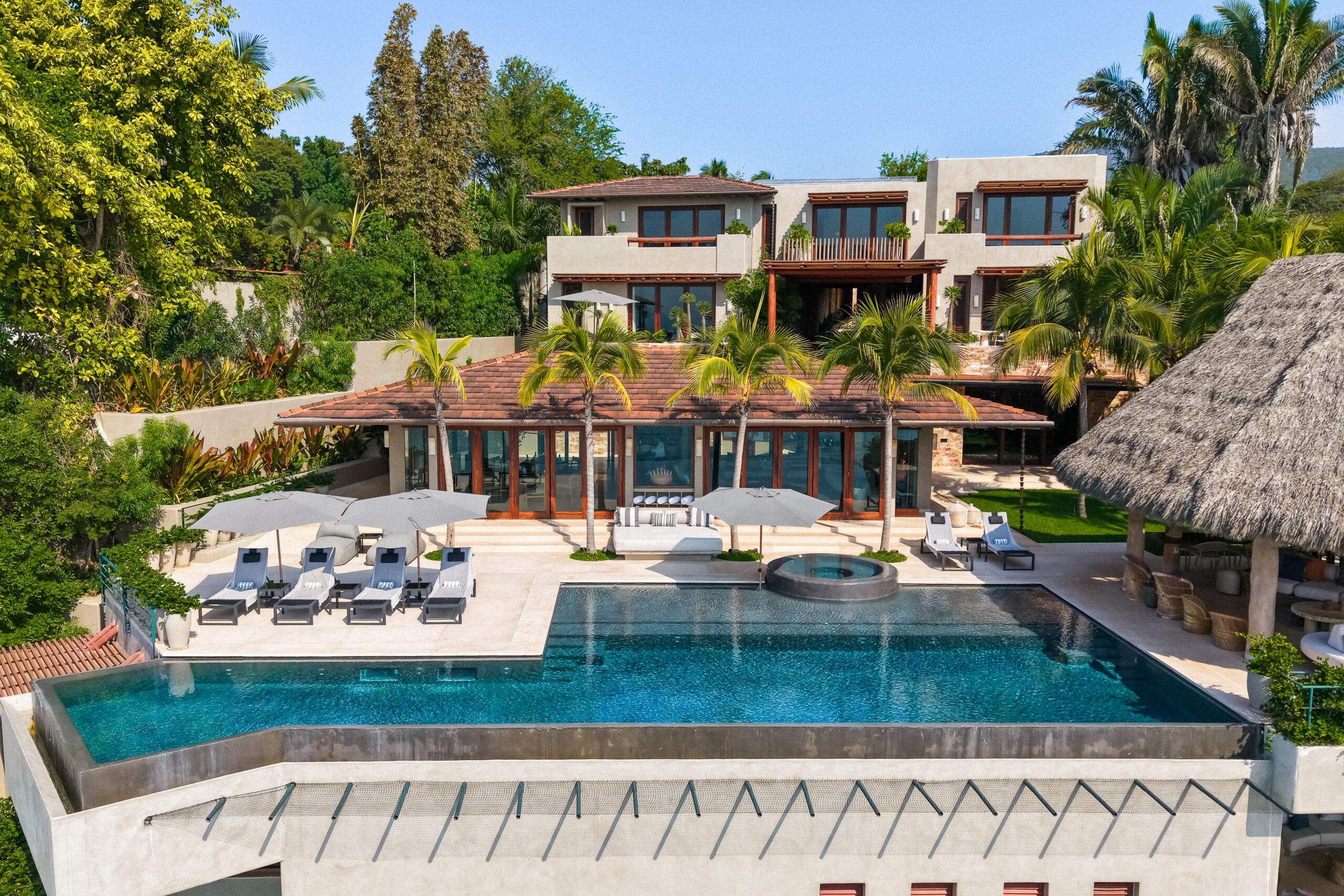 Casa Maka is a 7-bedroom luxury beachfront villa in Punta de Mita, offering panoramic Pacific Ocean views, open-concept indoor and outdoor living areas, and a private infinity pool. With direct beach access, spacious suites, and elegant social spaces, it is ideal for families, friends, and retreats seeking privacy and comfort.
