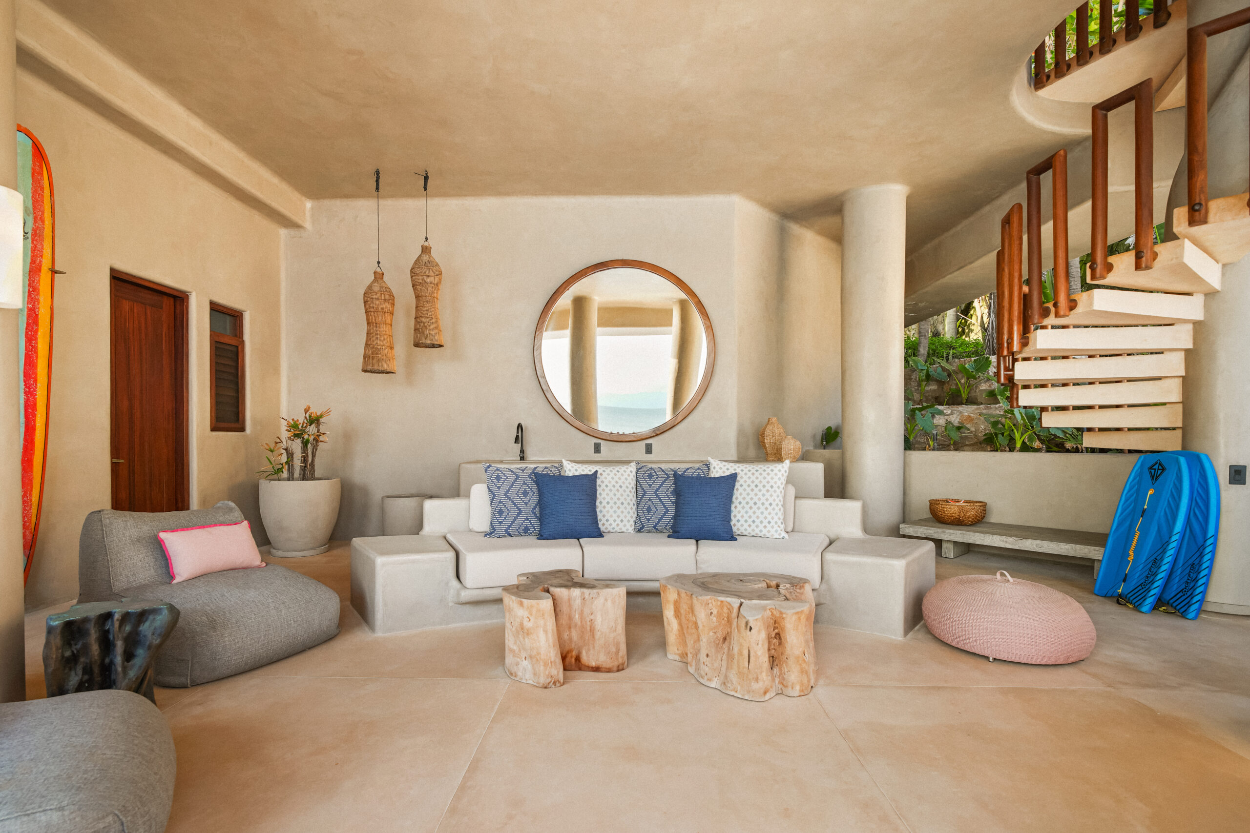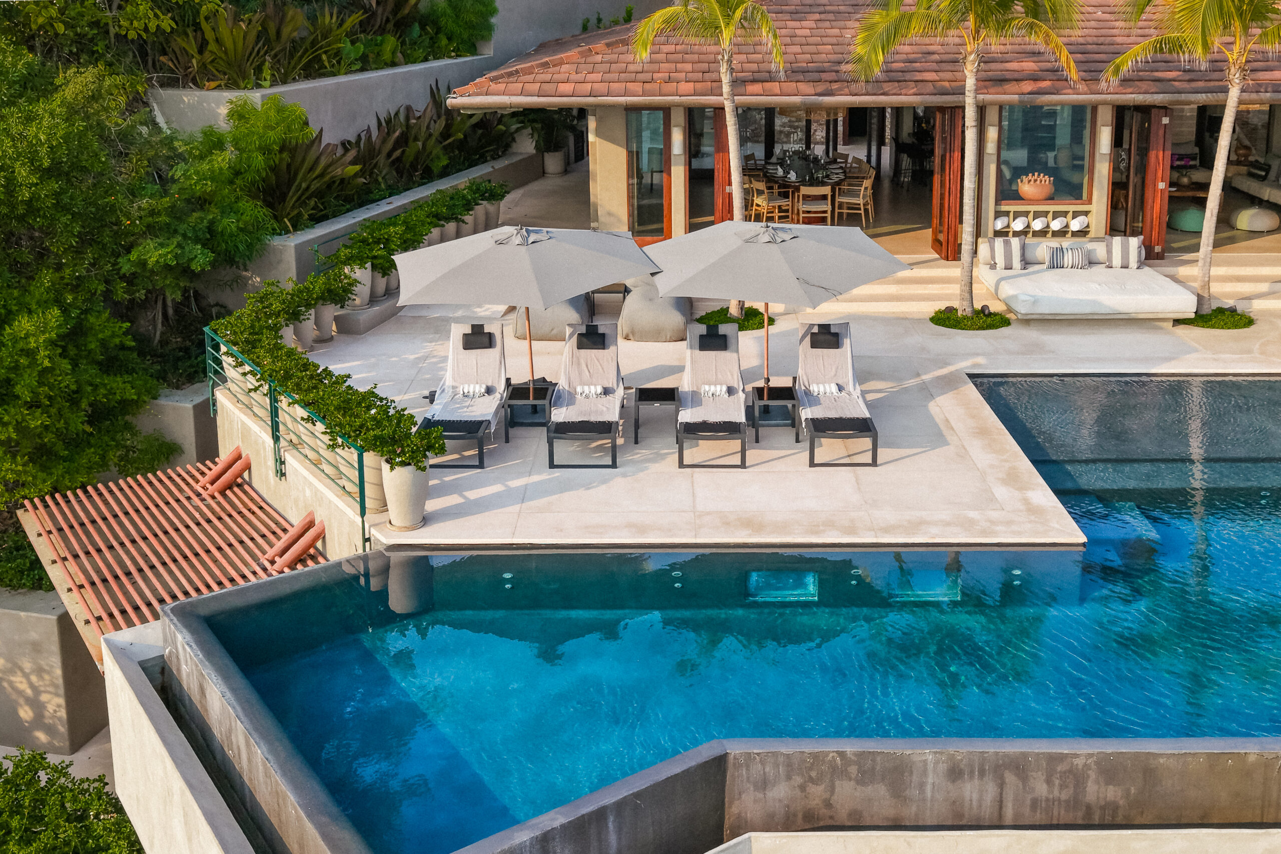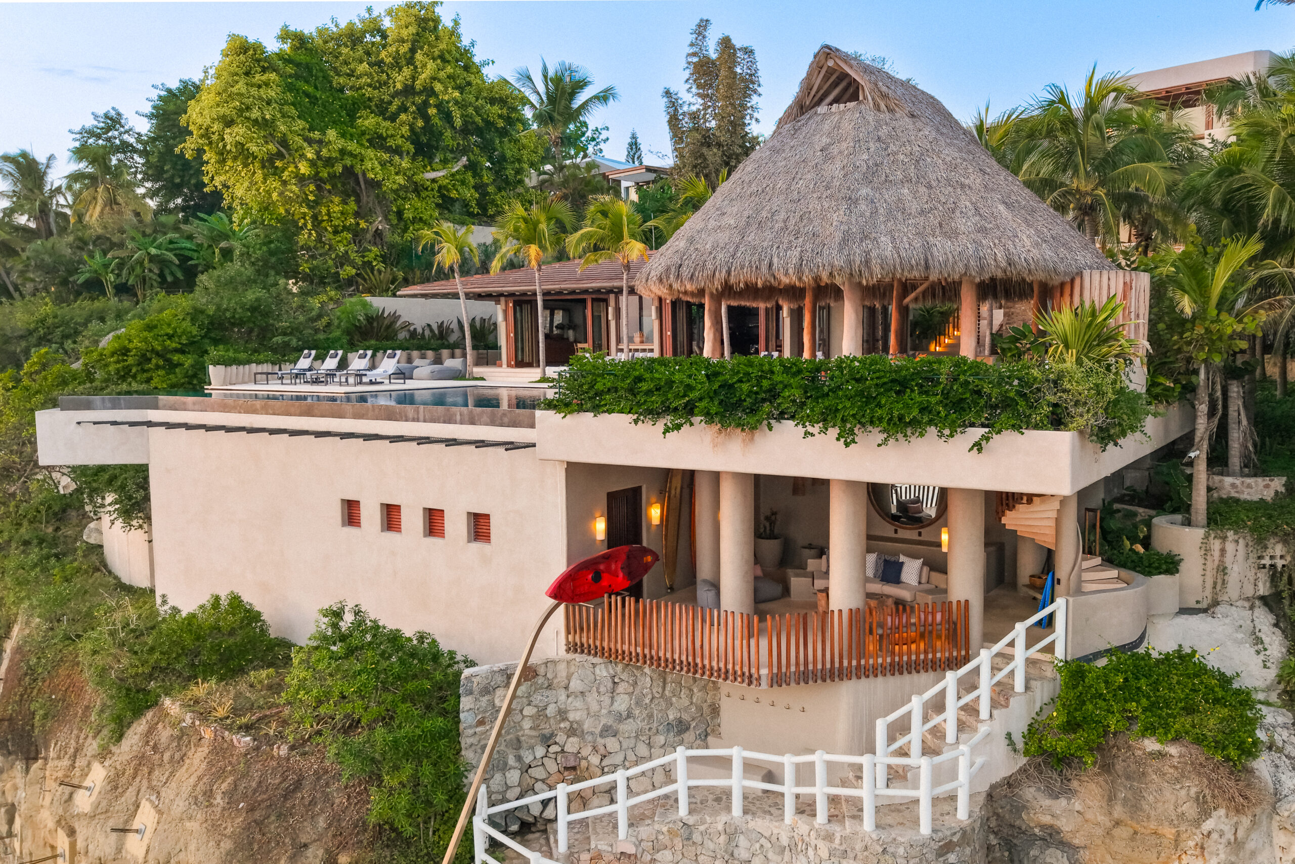 Designed for seamless indoor-outdoor living, Casa Maka places the ocean at the center of the experience. The villa features multiple terraces, shaded lounges, and an infinity pool overlooking the Pacific. Guests can enjoy paddleboarding, kayaking, and surfing directly in front of the villa, while nearby access to Veneros and W Hotel beach clubs provides ideal spots for swimming and beach relaxation. Every detail reflects comfort, craftsmanship, and effortless coastal luxury.