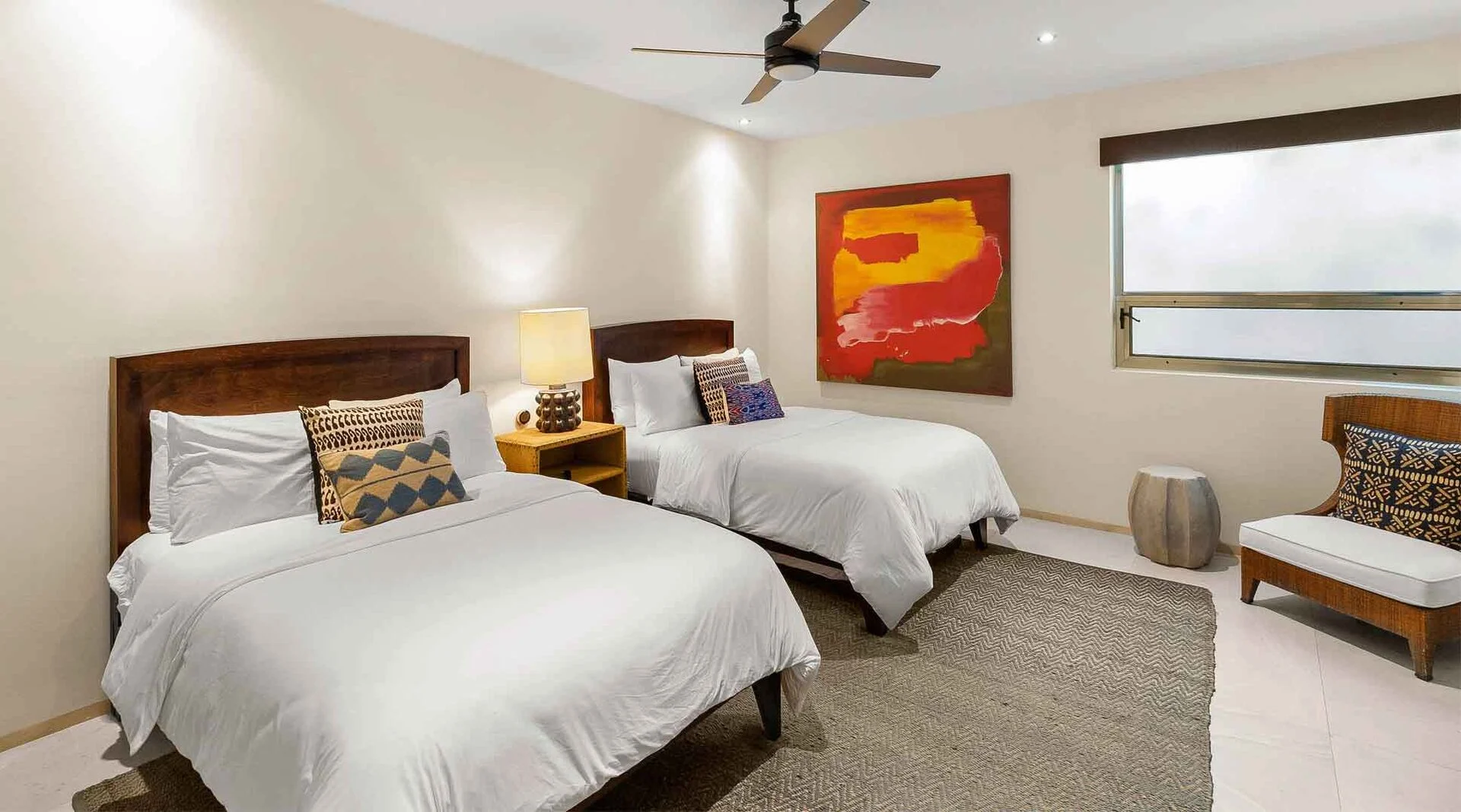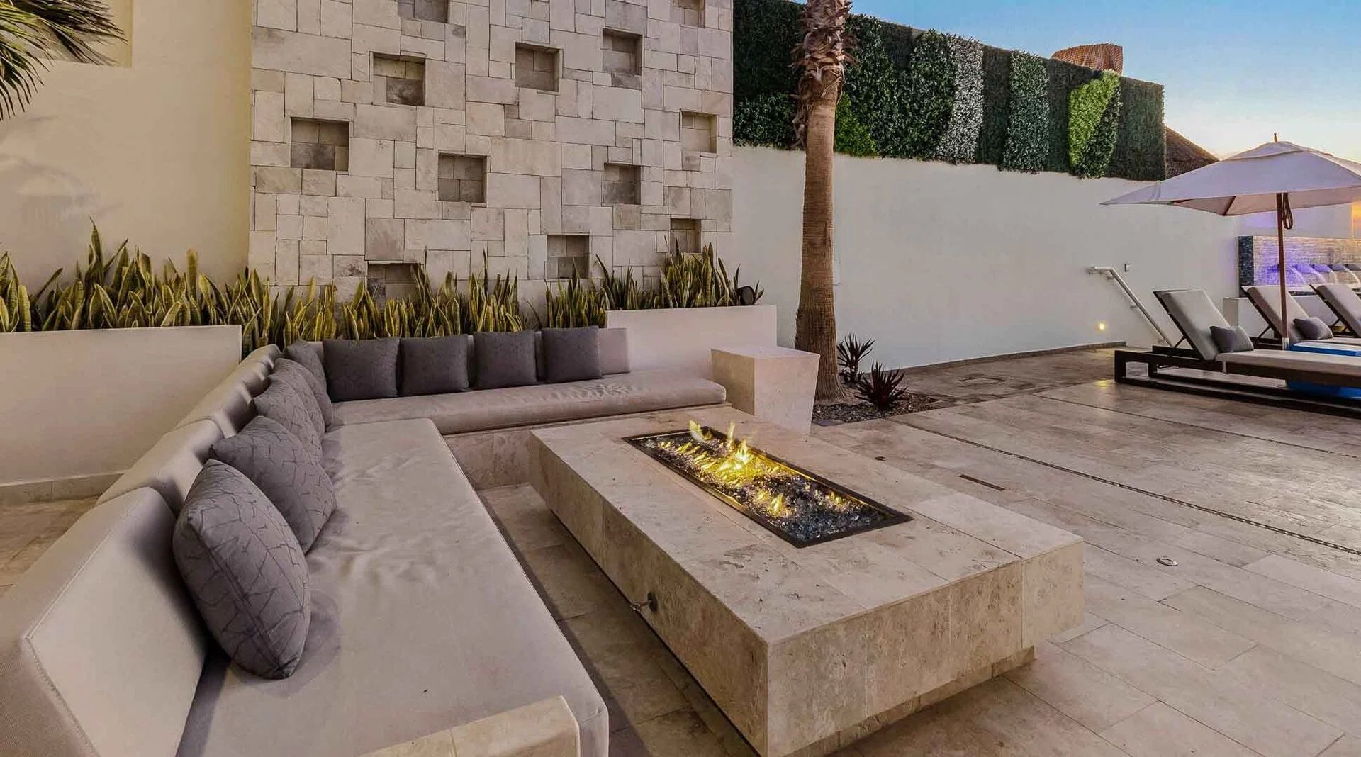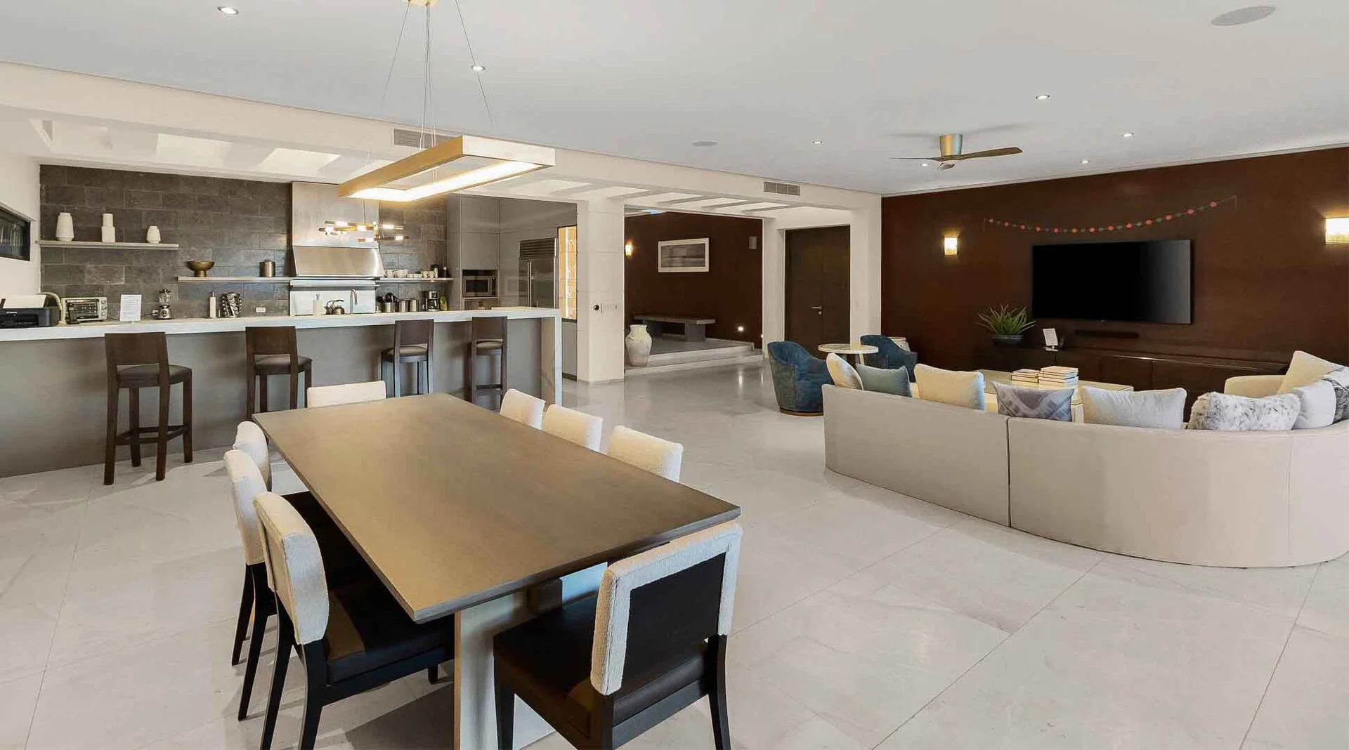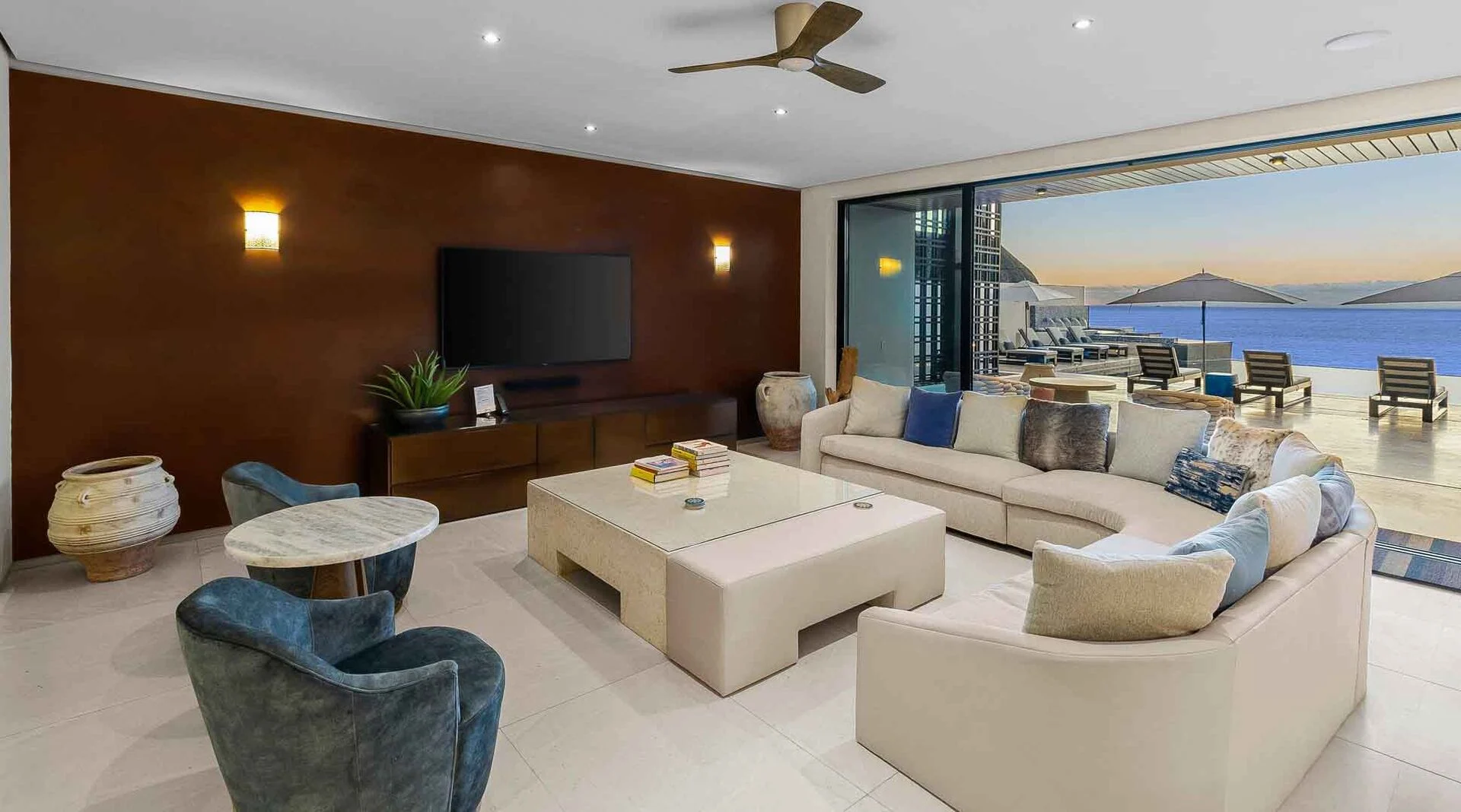 With 5 bedrooms, 5 bathrooms, and over 6,000 square feet on one level, Villa Serena is a refined beachfront retreat. The open-concept living and dining areas showcase uninterrupted views of the Sea of Cortez, while the gourmet kitchen is equipped with state-of-the-art appliances, a kitchen island, breakfast bar, and water filtration system. Outdoors, the villa features a heated infinity pool, hot tub, palapa-covered dining terrace, fire pit, BBQ, wet bar, and direct access to an exclusive stretch of beach. Daily housekeeping, daily butler service, and a personal concierge complete the experience.