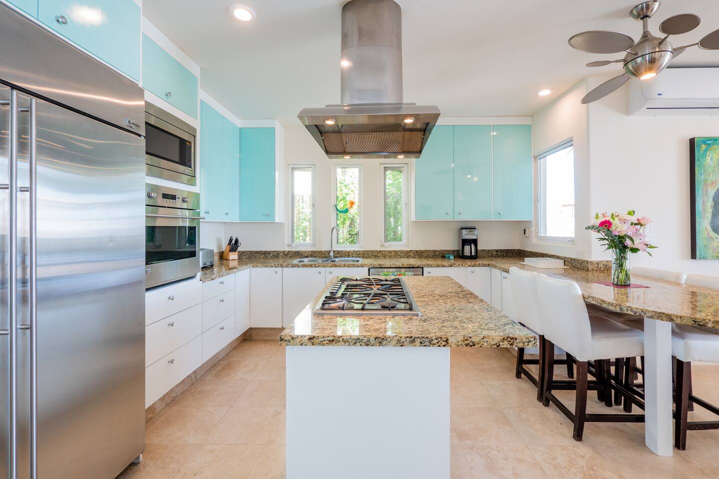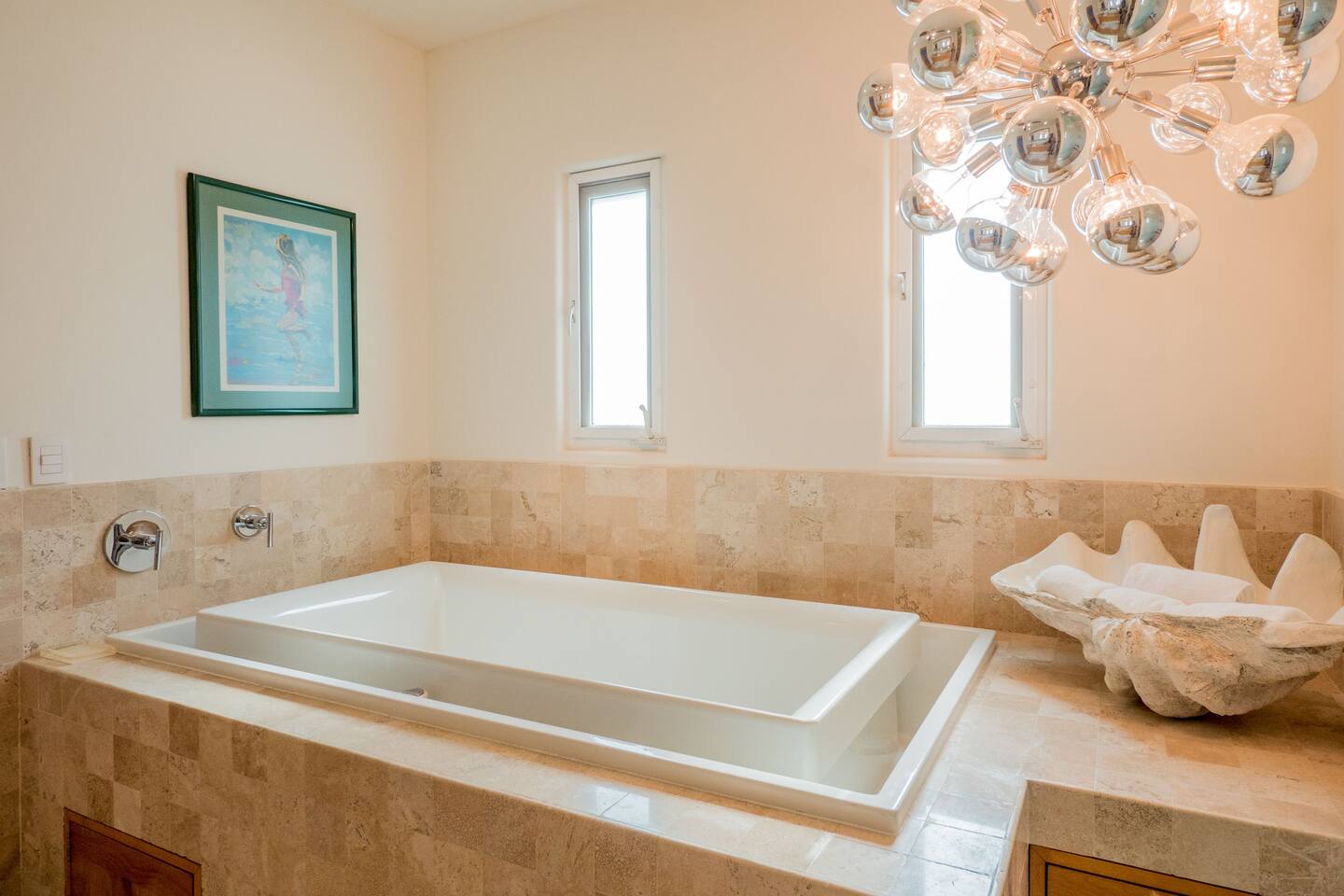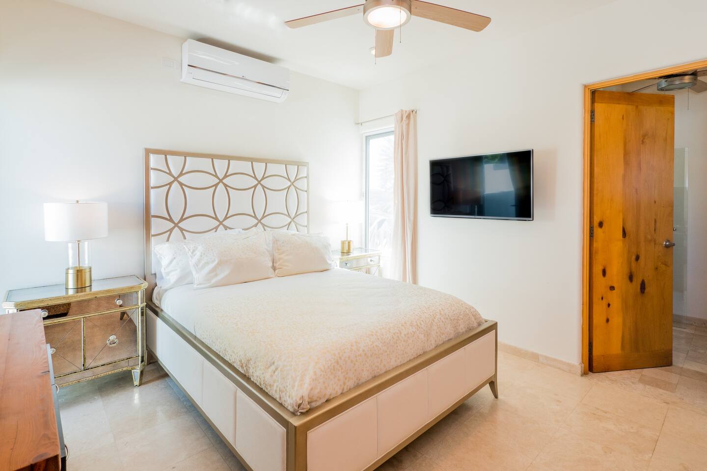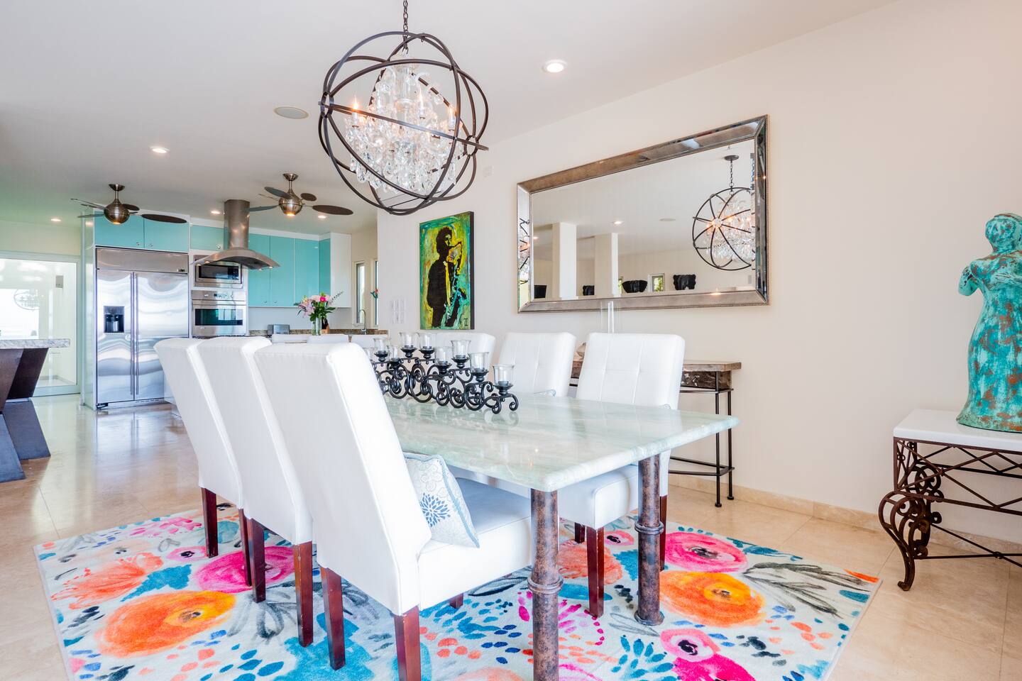 Inside, Villa Sirena showcases contemporary style with high-end finishes and a warm, inviting décor. The gourmet kitchen features granite countertops and premium appliances, ideal for preparing meals or arranging a private chef experience. Each bedroom includes its own en-suite bathroom, while the spacious master suite boasts a private balcony and a luxurious jetted tub that fills from the ceiling. With multiple indoor and outdoor living spaces, Villa Sirena is the perfect setting for an unforgettable Cabo escape.